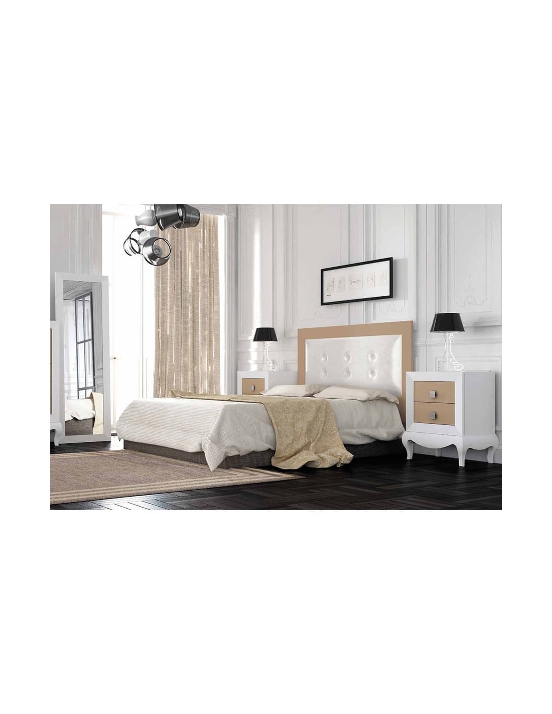 Dormitorio estilo romantico con bancada isabelina y cabecero capitone