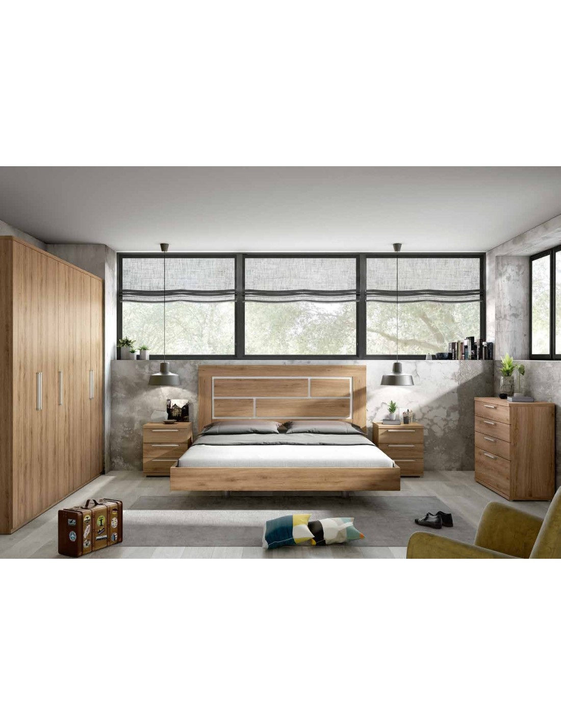 Dormitorio matrimonio diseño nordico con mesitas de noche sinfonier cabecero madera o tapizado (5)