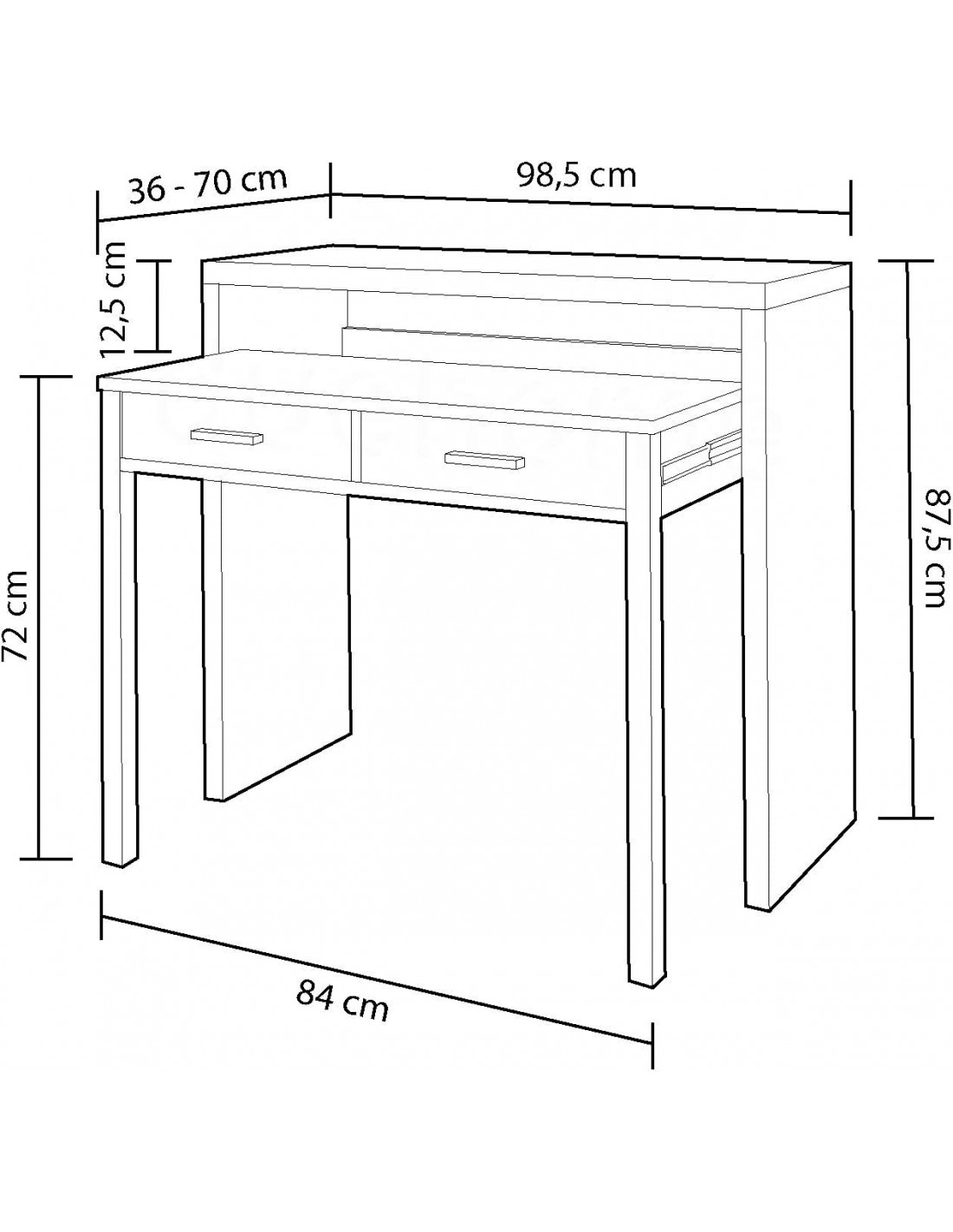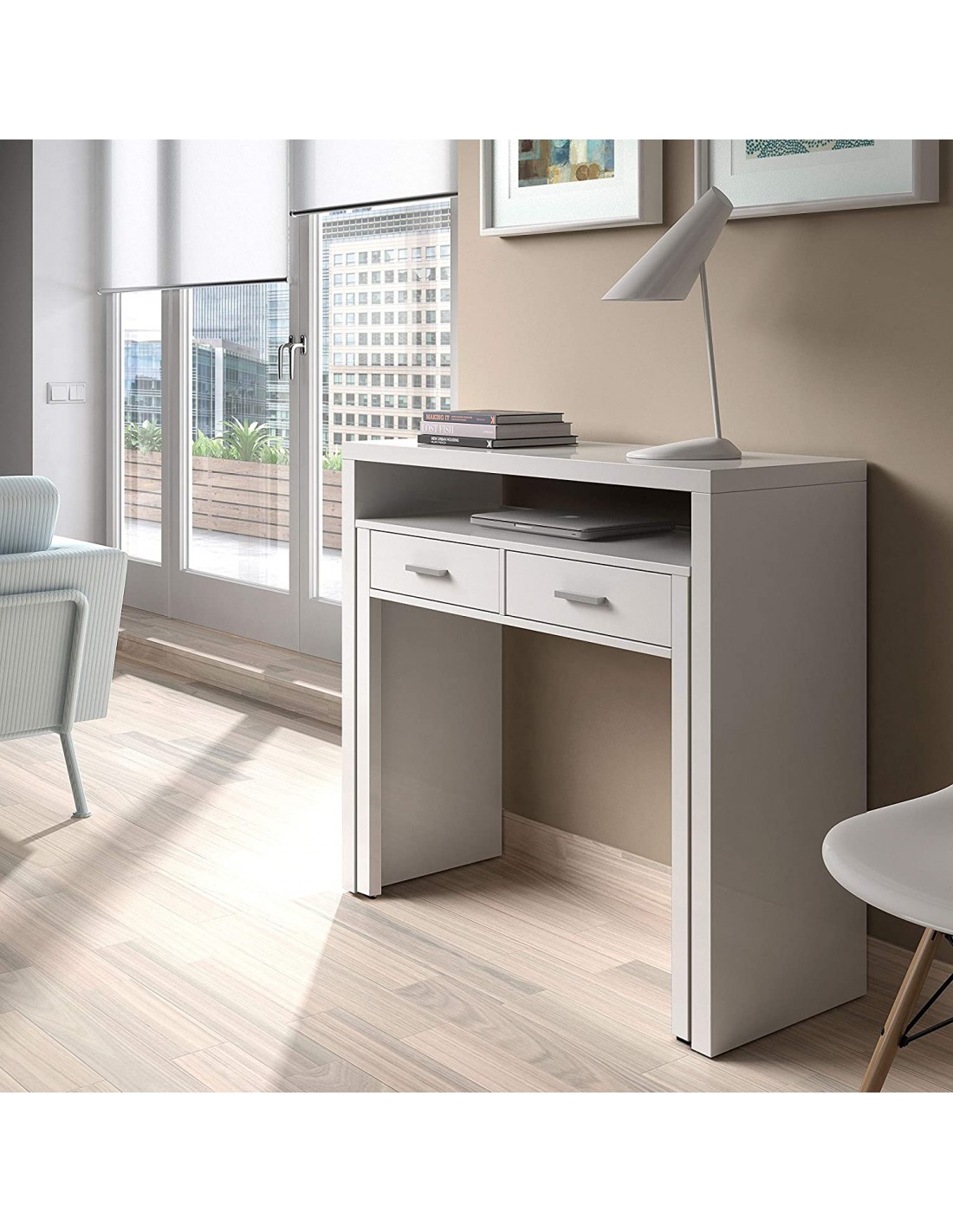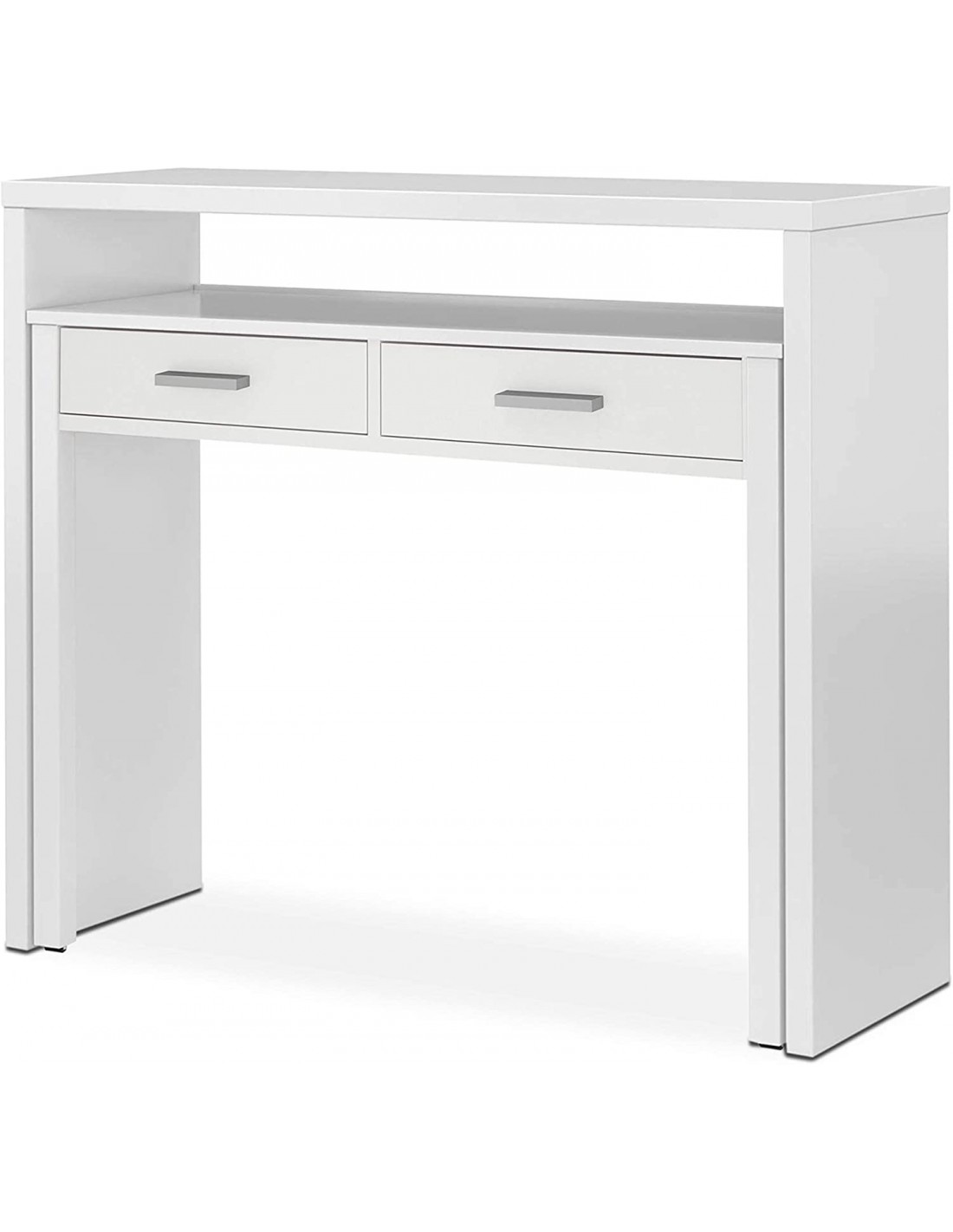 Cerrado es una bonita consola con dos cajones, pero si lo abres se convierte en un práctico y funcional escritorio. Tú decides como lo utilizas. En color blanco Artik para que combine con tu decoración