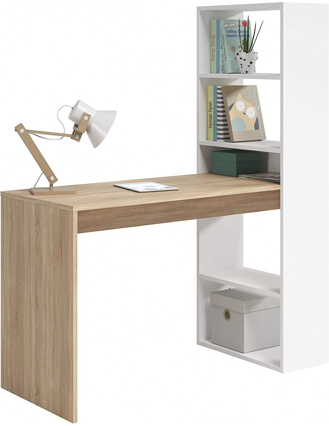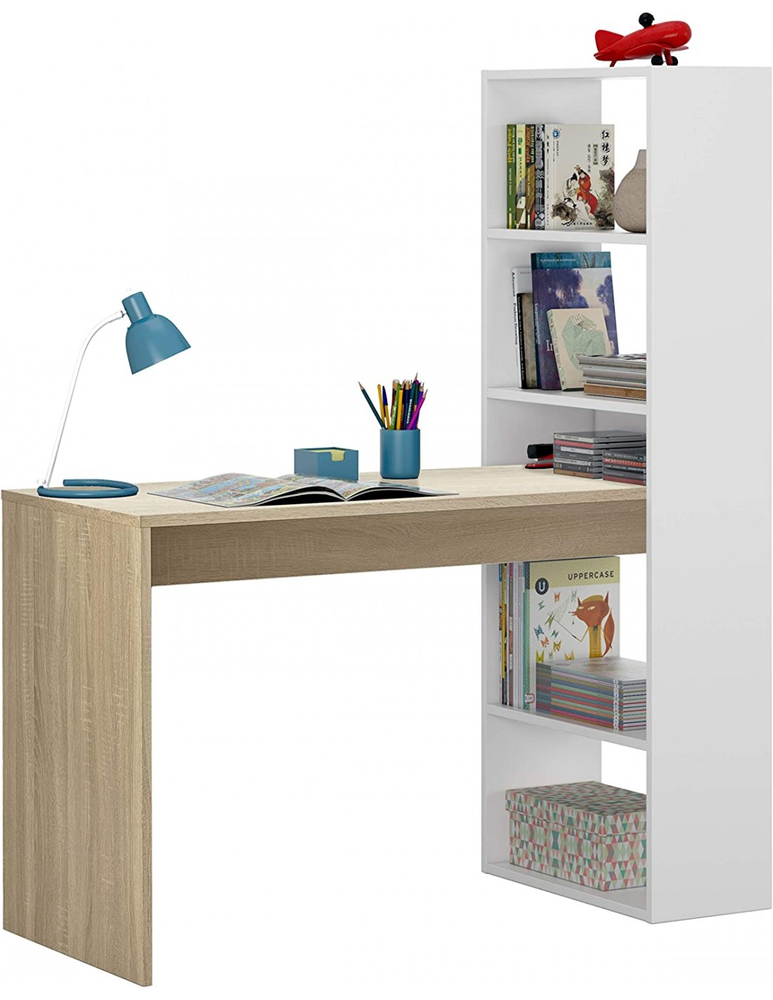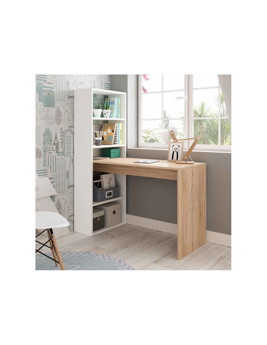 Escritorio + Estantería Reversible Blanco y Cambrian