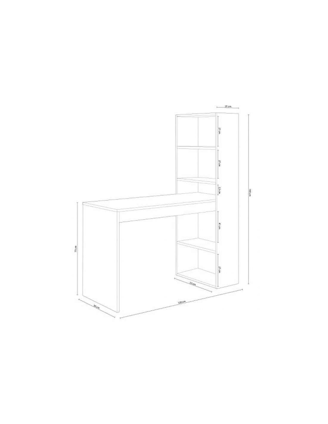 - Mesa reversible. La estantería puede ir a la izquierda o a la derecha.