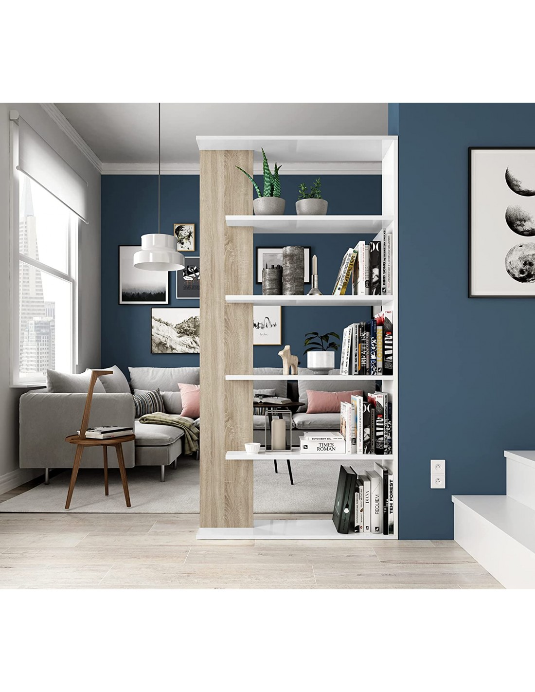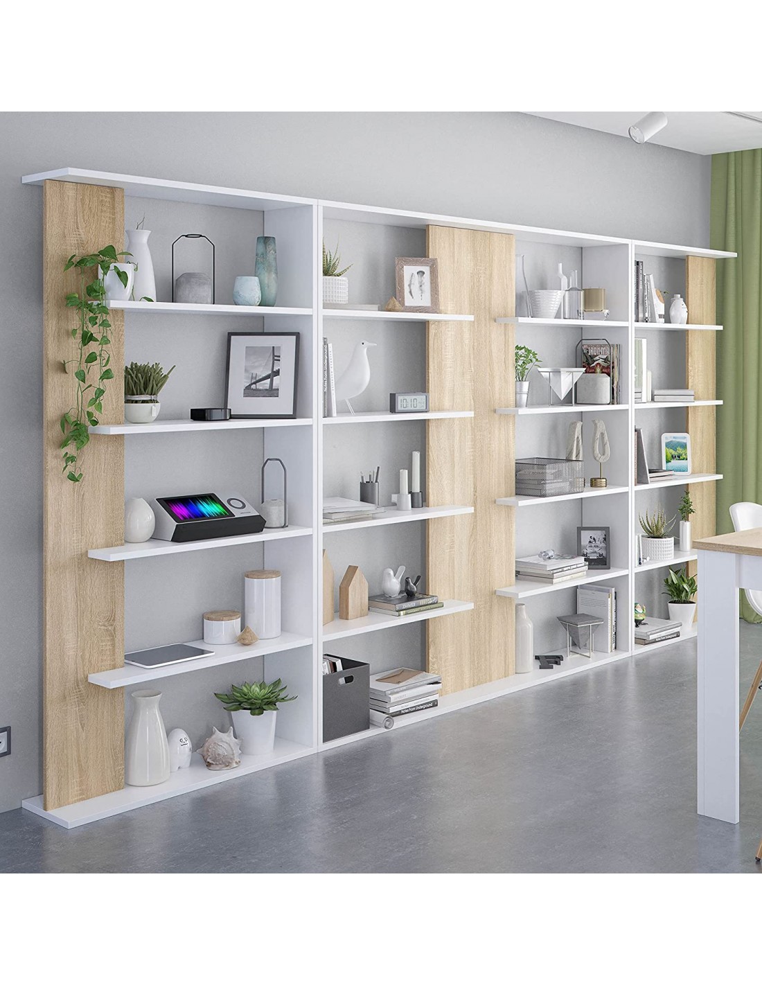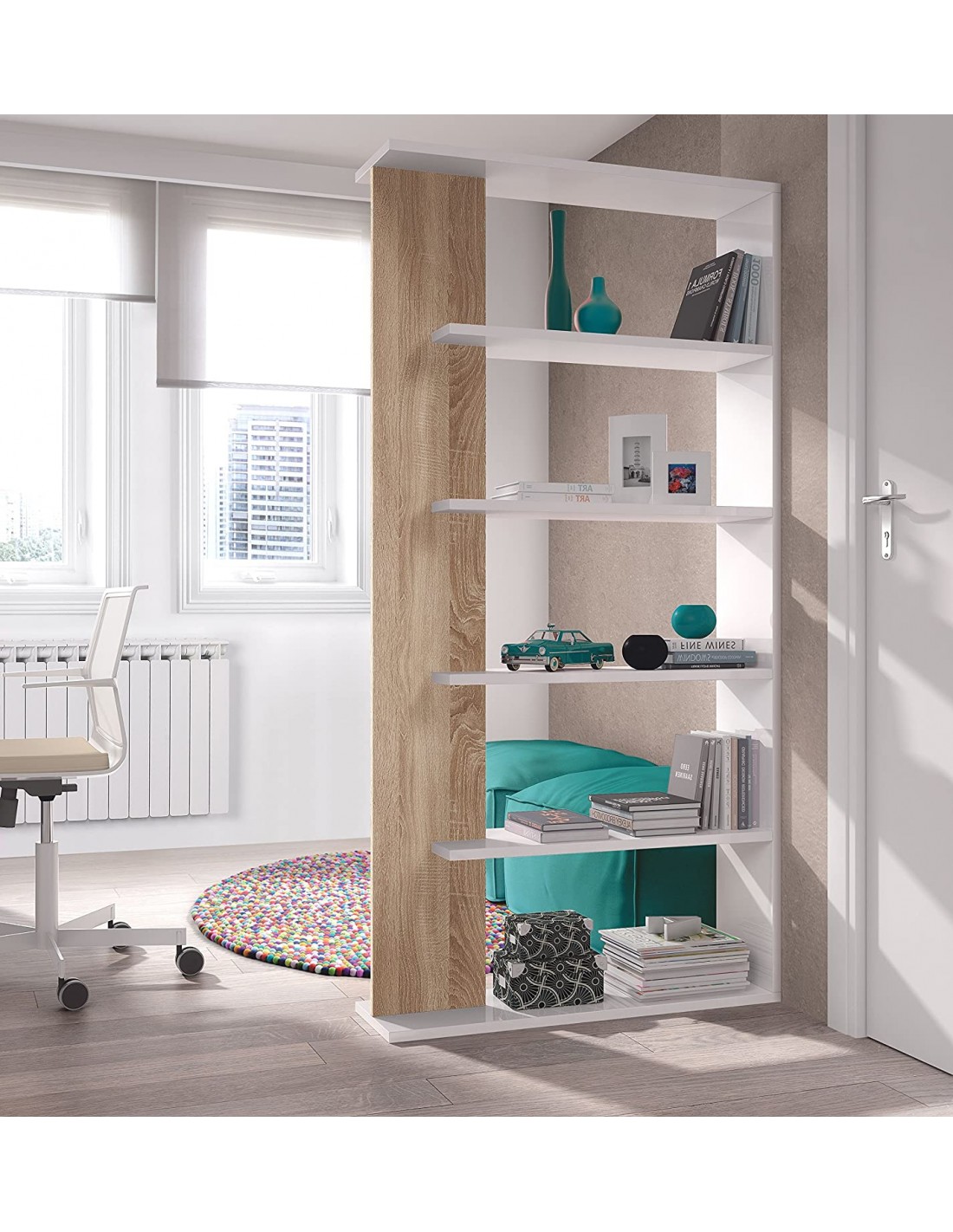 Estantería alta de 5 estantes. estantes no regulables en altura y se puede utilizar como separador de ambientes tomando las medidas oportunas.