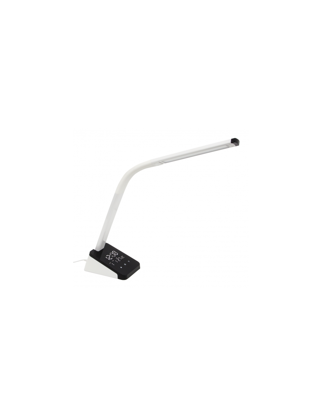 Moderno flexo serie CHACO en color blanco con tecnología LED INTEGRADA. Sus medidas son de 70,2X17,5X12 centímetros y tiene un peso neto de 1255 gramos. Su potencia de luz es de 10 watios, 1350 lúmenes y 2800k,4000K y 6500K, RGB para luz noche y ahorro de energía. Contiene puerto USB, función de reloj e indicador de temperatura.