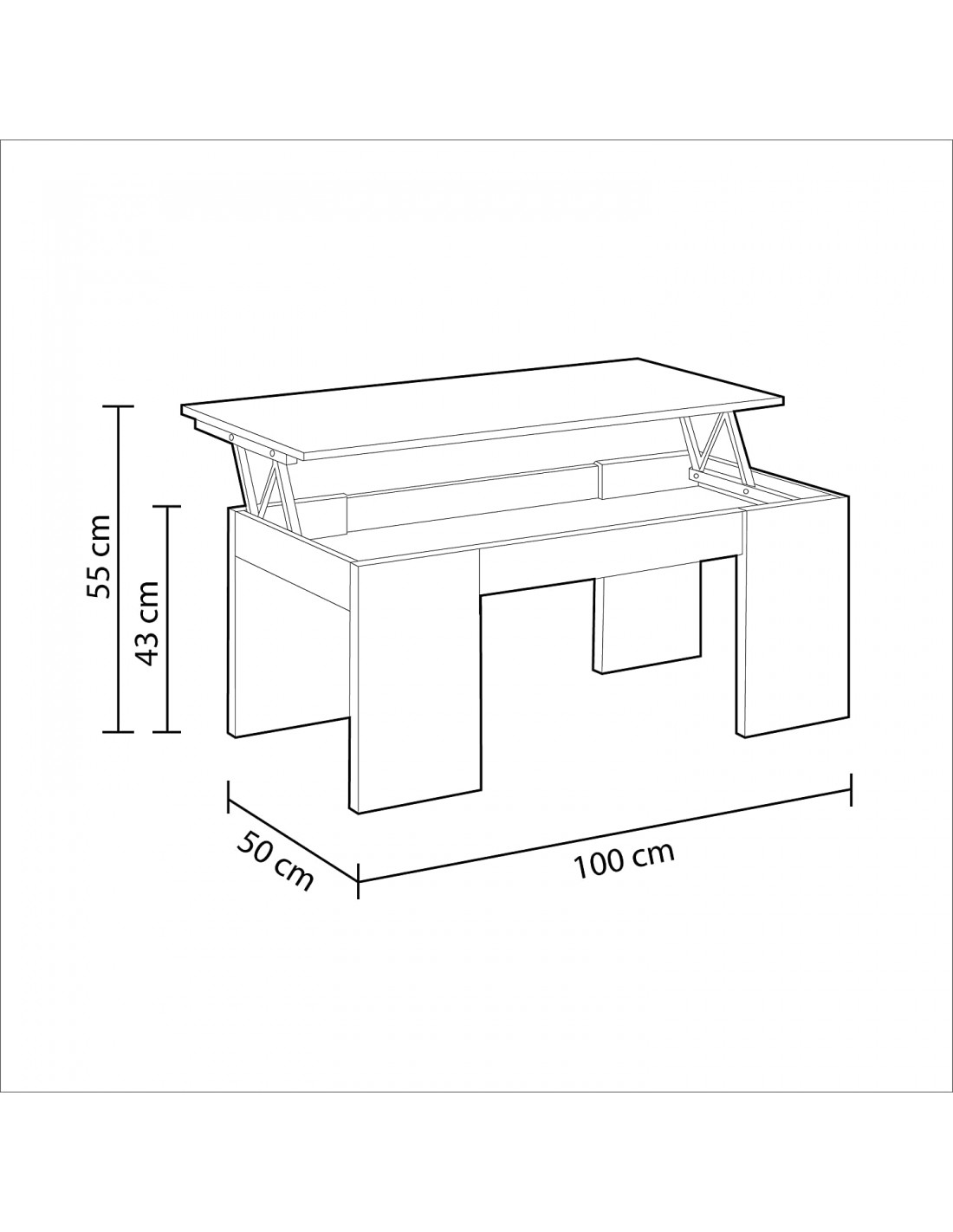 La mesa de centro elevable , es una funcional mesa auxiliar cuya tapa superior se eleva para acercar la superficie de la mesa hasta el usuario. Dispone de espacio de almacenamiento interior que queda oculto cuando la tapa esta cerrada