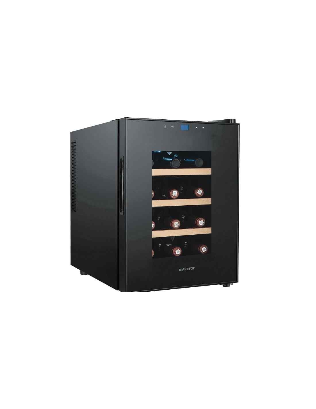 INFINITON Vinoteca 12 botellas, color negro, puerta de vidrio