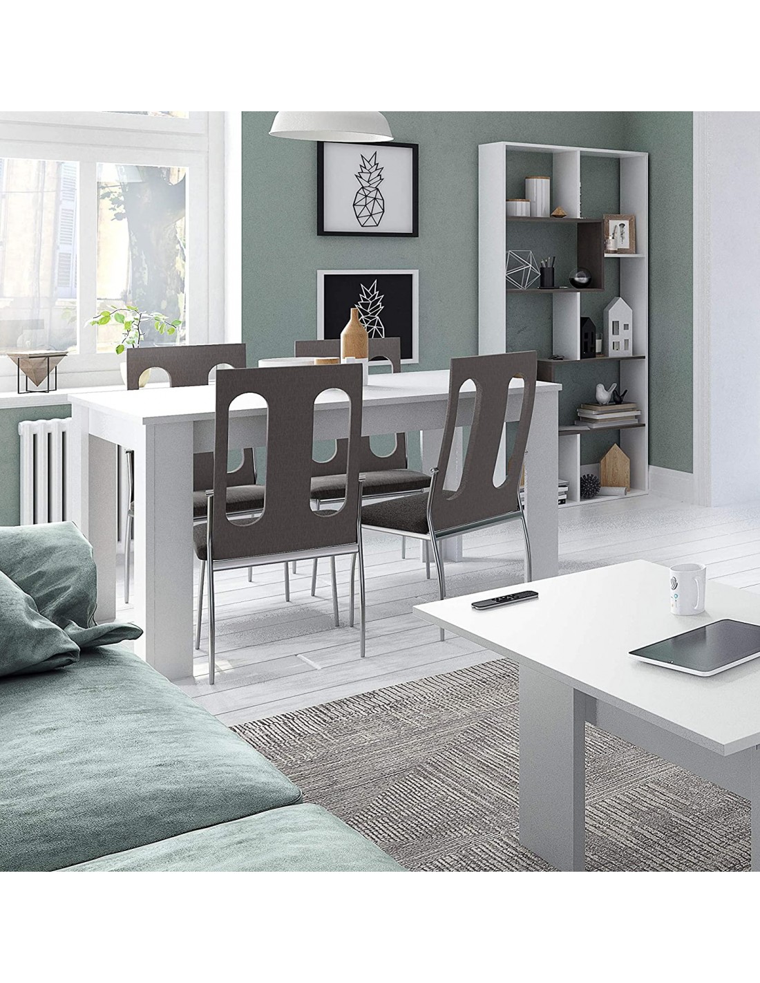 Mesa comedor extensible. Tiene guías correderas metálicas para la apertura de la mesa. Incluye tacos de ABS quitarruidos y antirayas para la parte inferior del mueble.