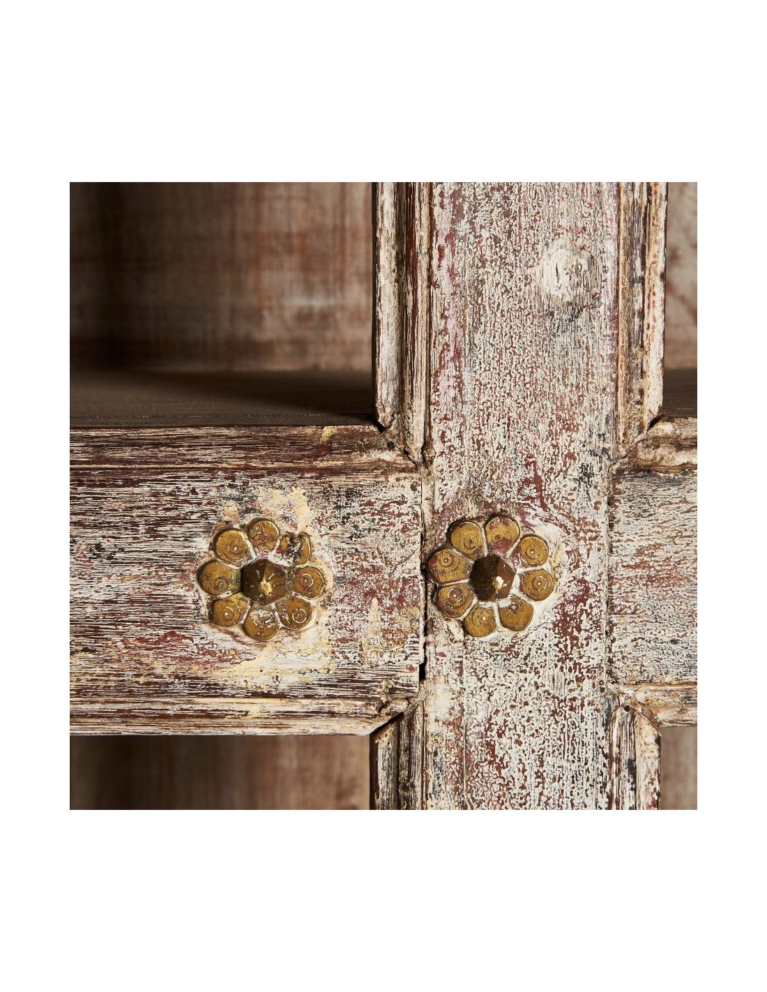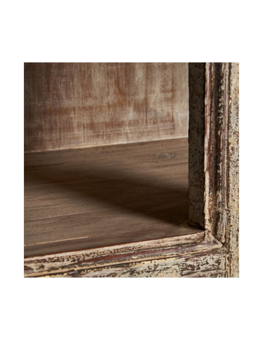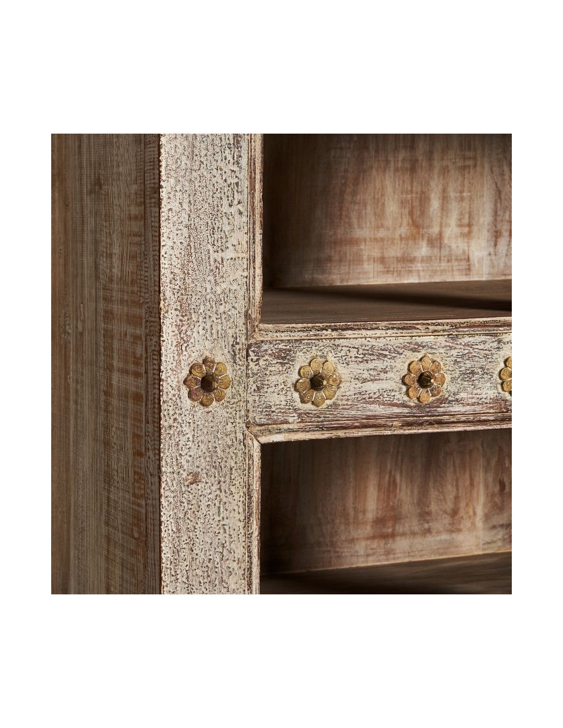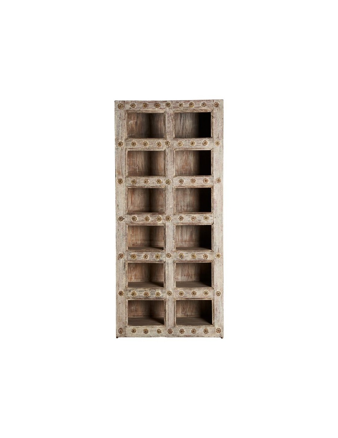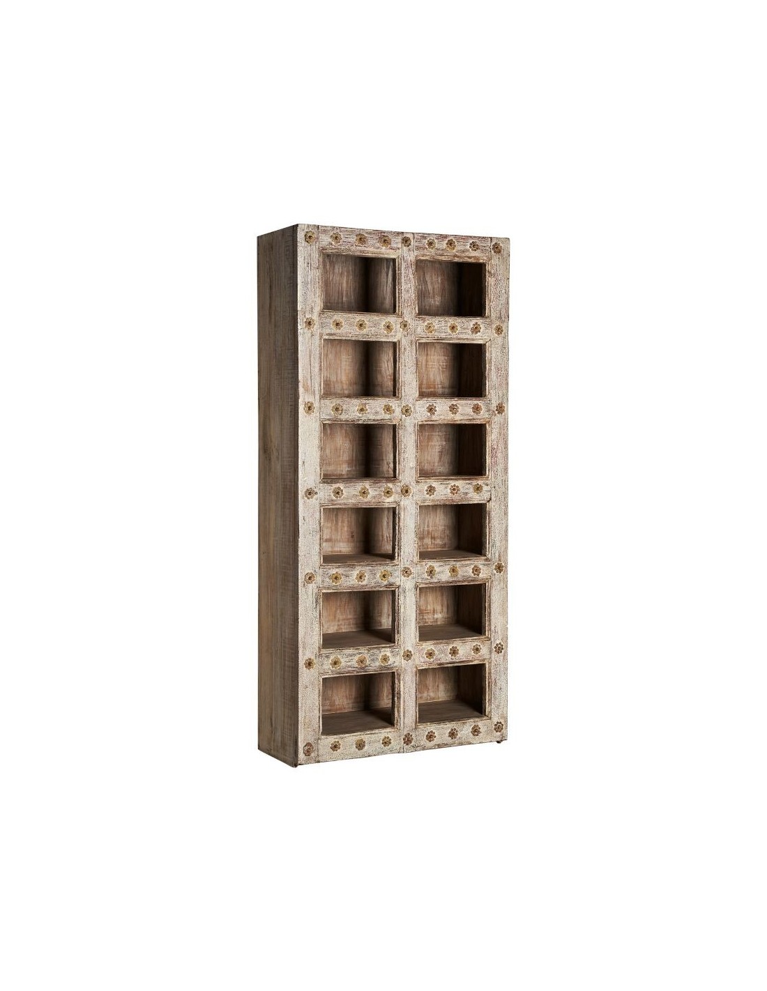 Librería Enshi, En Color Blanco Roto Envejecido, De Estilo Oriental. Fabricado En Madera De Teka. Debido A La Elaboración Artesanal, Puede Cambiar De Forma, Tamaño Y Color.