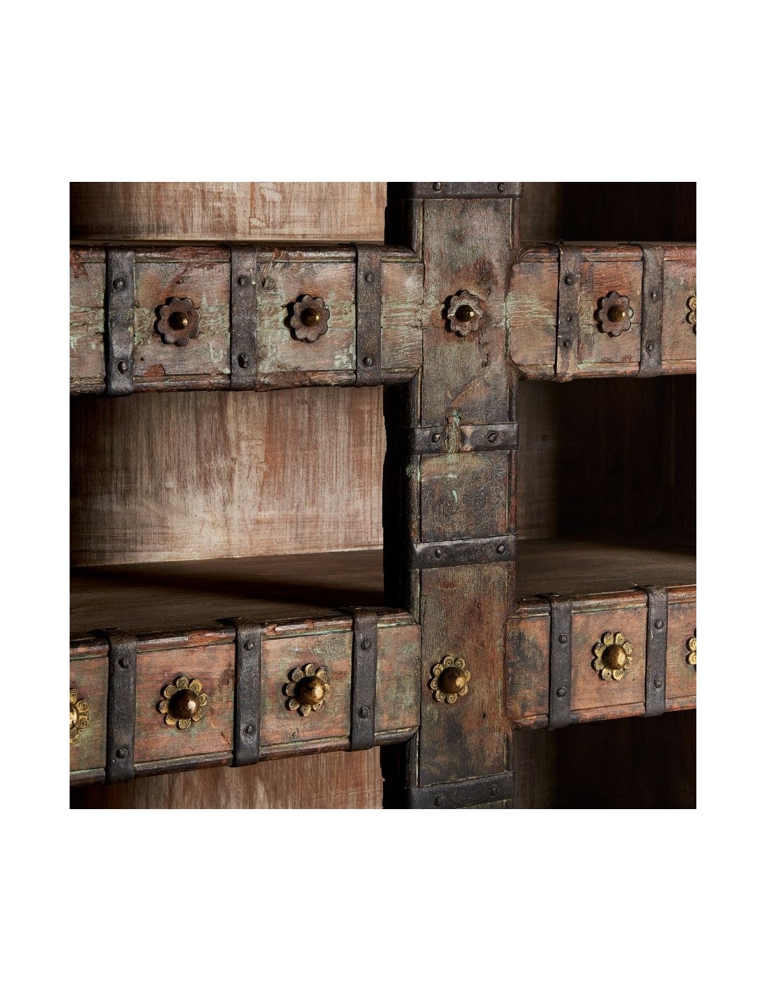Librería Enshi, En Color Marrón Envejecido, De Estilo Oriental. Fabricado En Madera De Teka. Debido A La Elaboración Artesanal, Puede Cambiar De Forma, Tamaño Y Color.