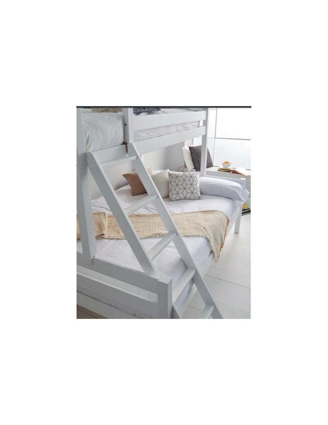 Litera fabricada en madera de pino macizo acabado lacado blanco.
