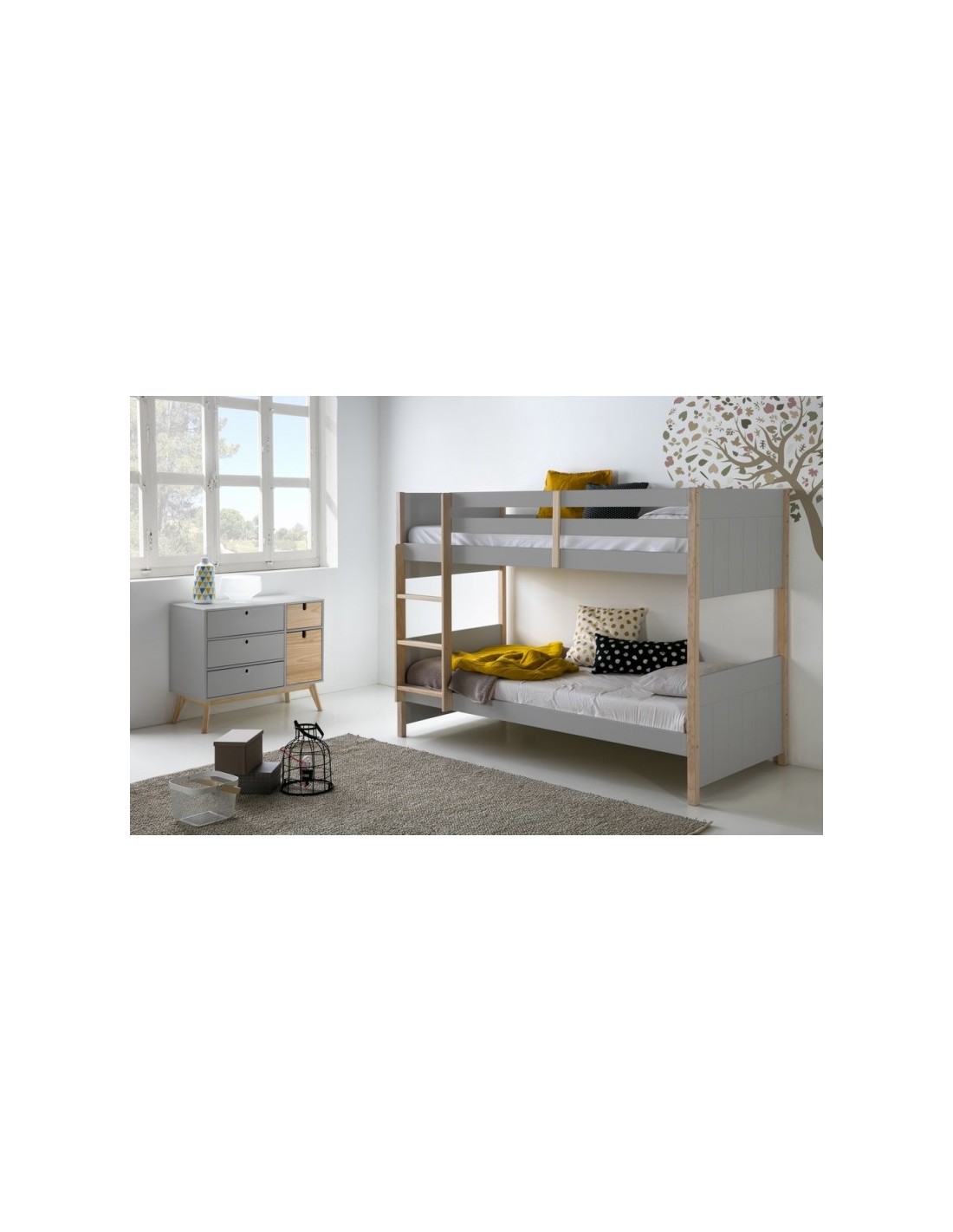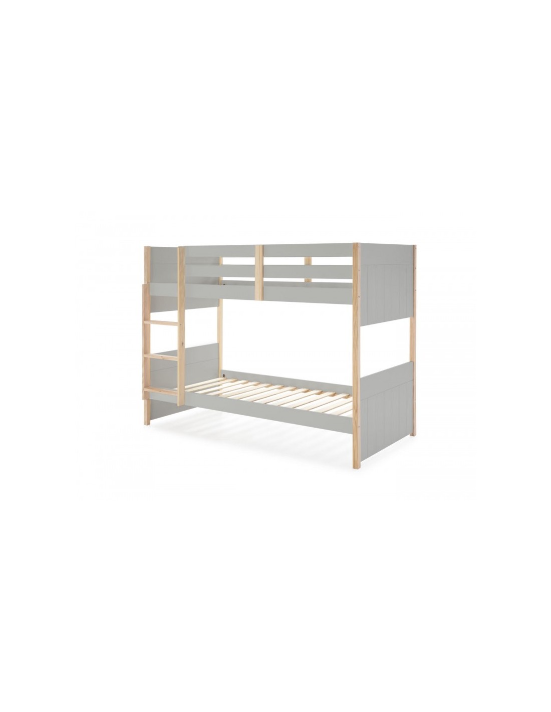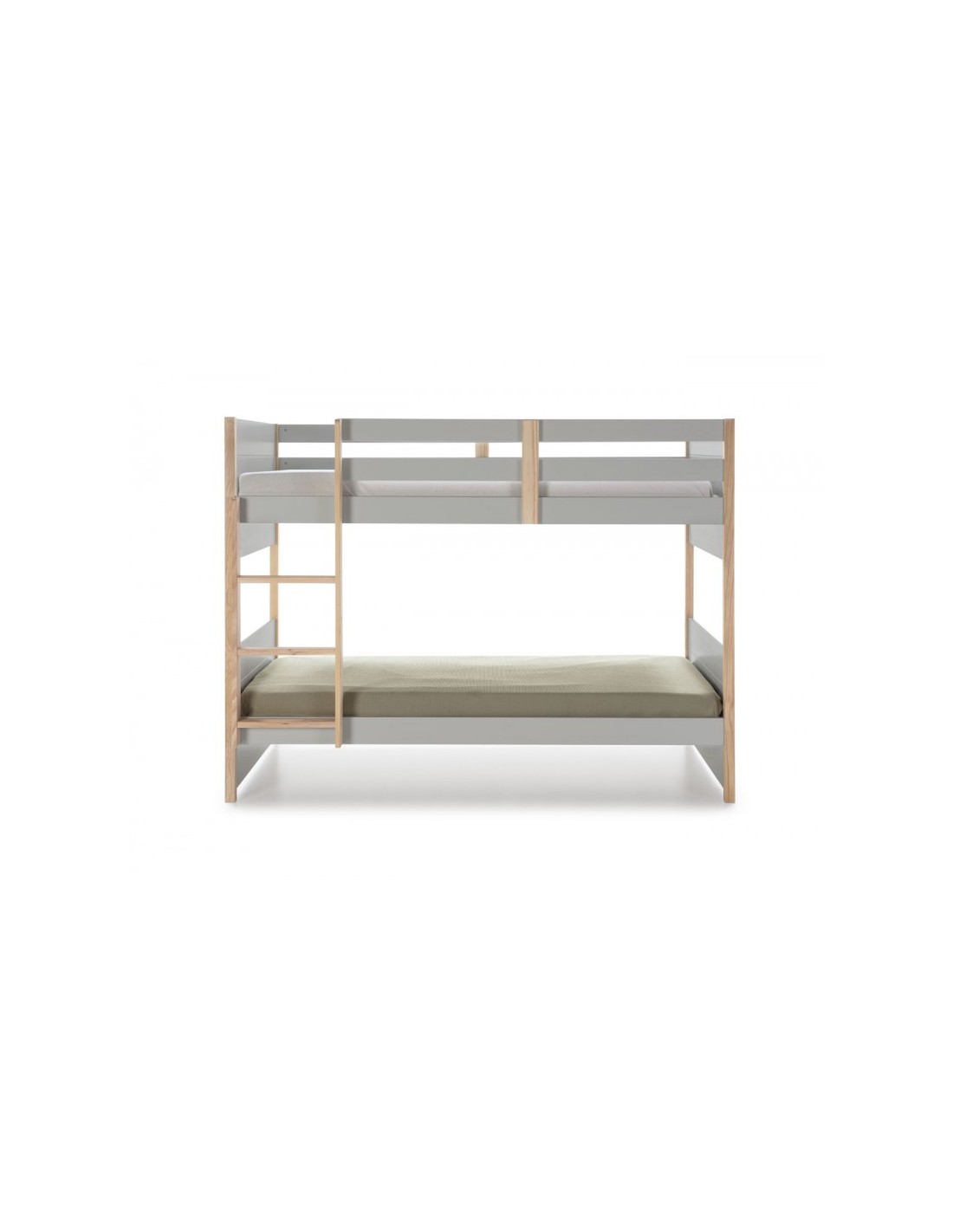 Litera con 2 camas de 90 x 190 de madera acabado en gris claro y madera natural a la cera.
