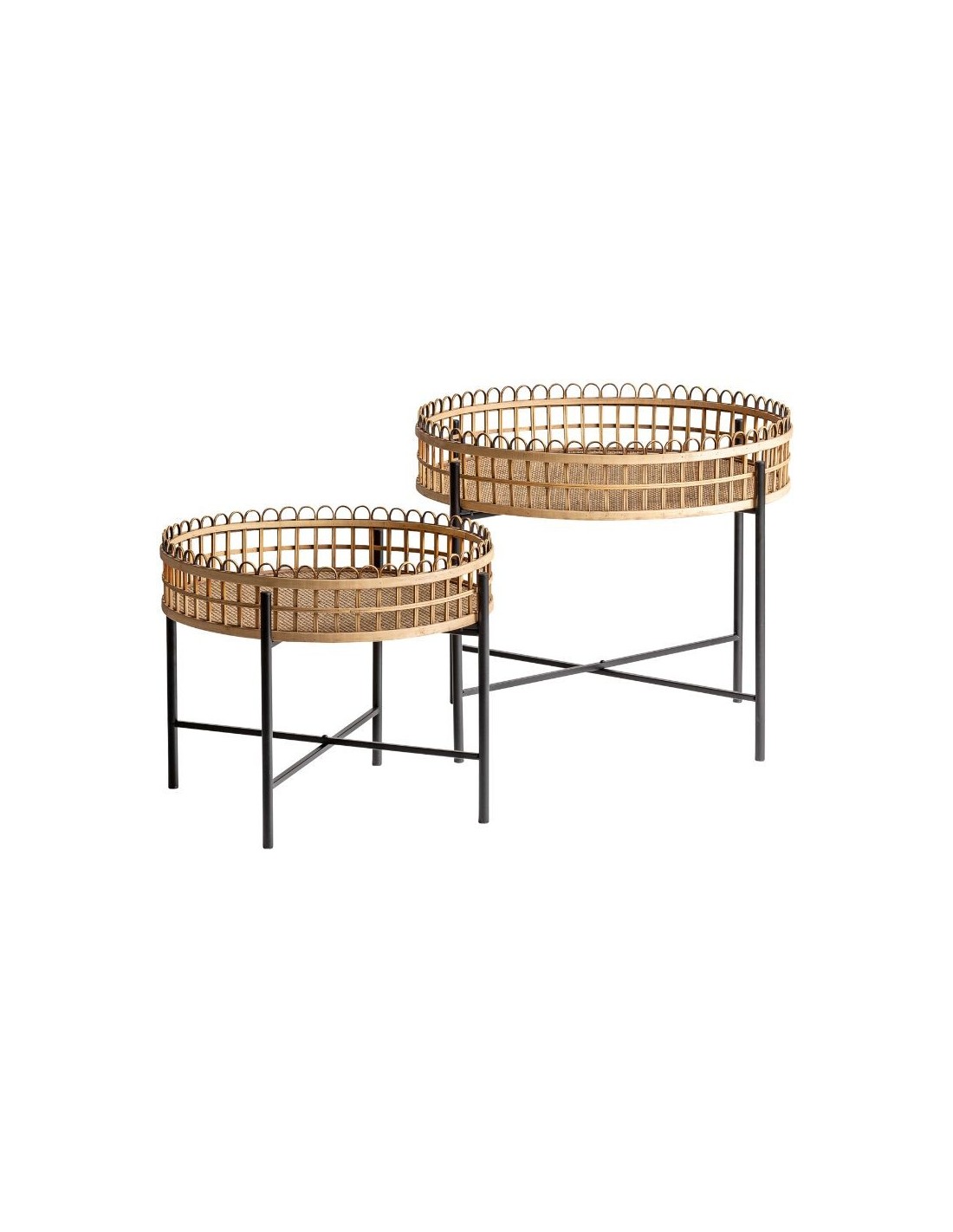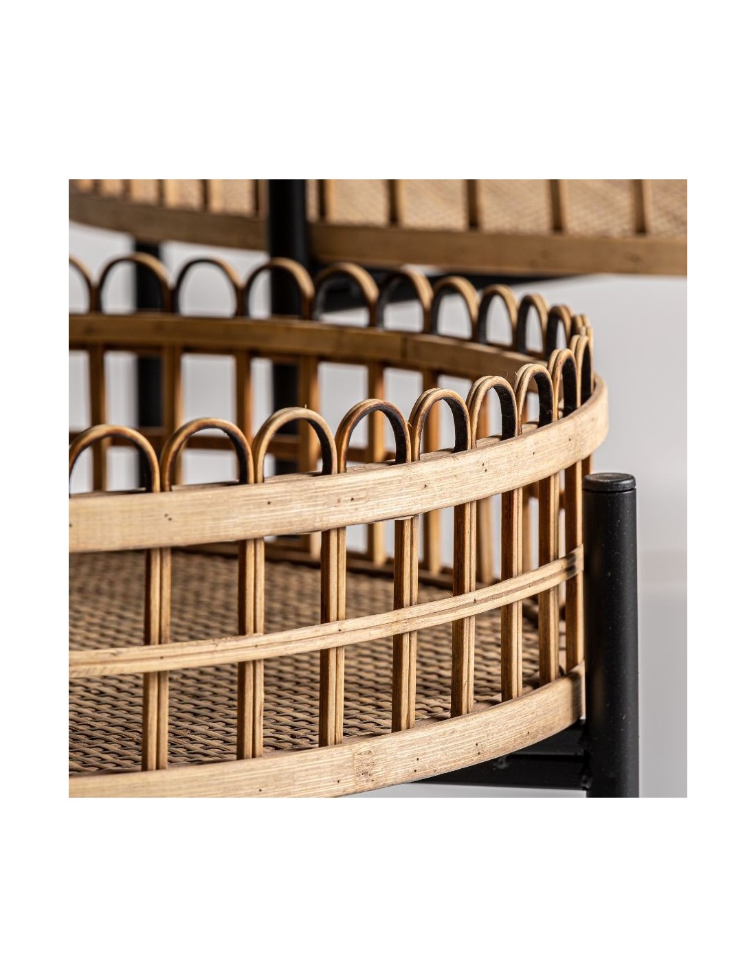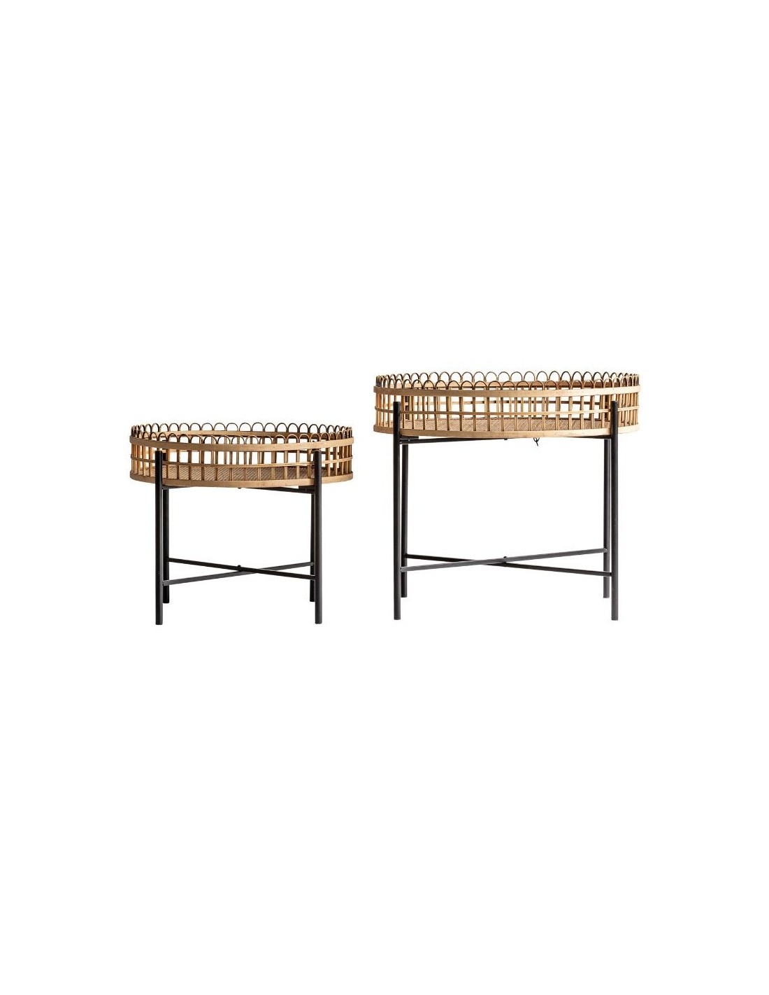 Mesa Auxiliar J/2 Travnik, En Color Natural, De Estilo Contemporáneo. Fabricado En Ratán, Combinado Con Hierro Y Bambú. Producto Desmontable, Plegable.