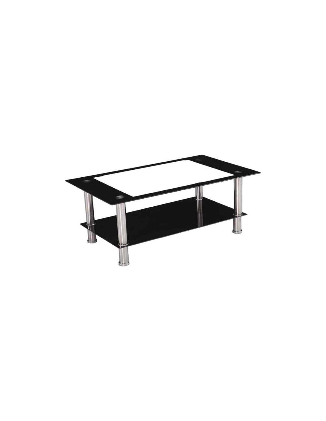 Mesa de centro recatangular fabricada en cristal de alta calidad con marco en negro y centro transparente. Patas gruesas de forja que brindand gran estabilidad.