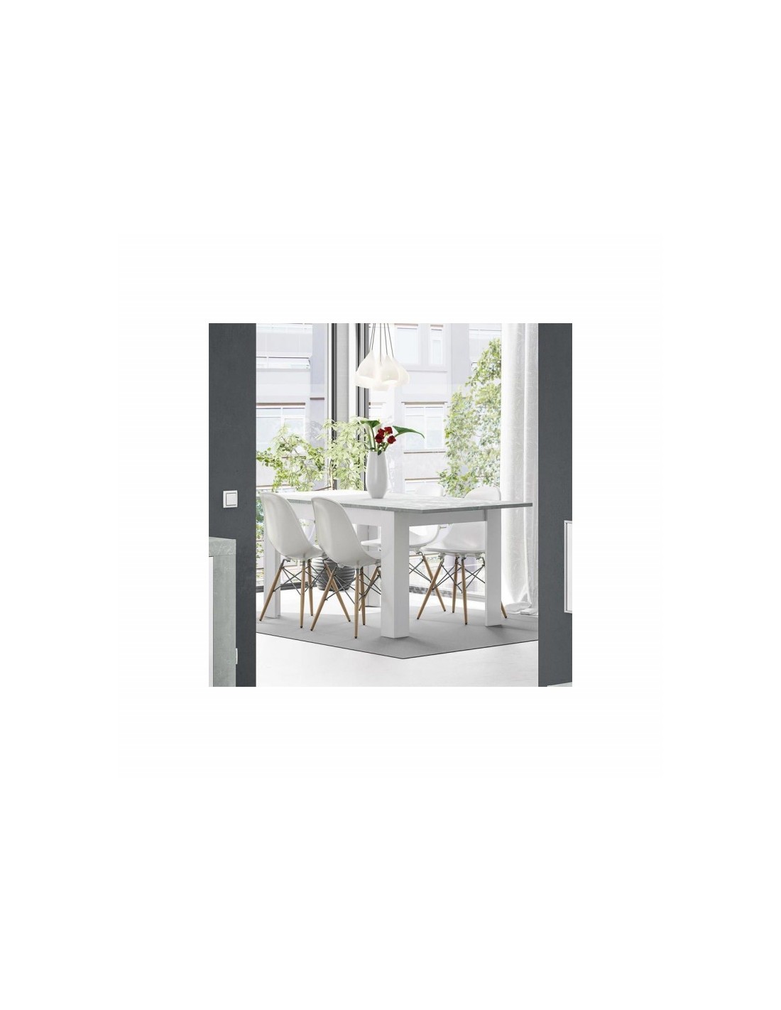 Mesa comedor extensible. Guías correderas metálicas para la apertura de la mesa. Cierres metálicos para el cierre de la mesa.