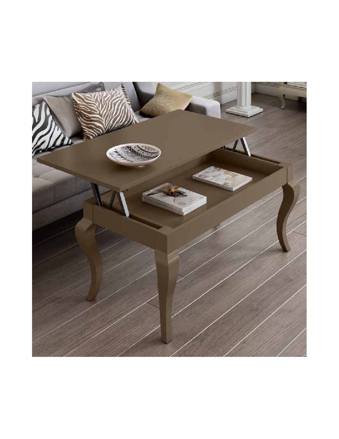 Mesa de centro elevable con pata isabelina