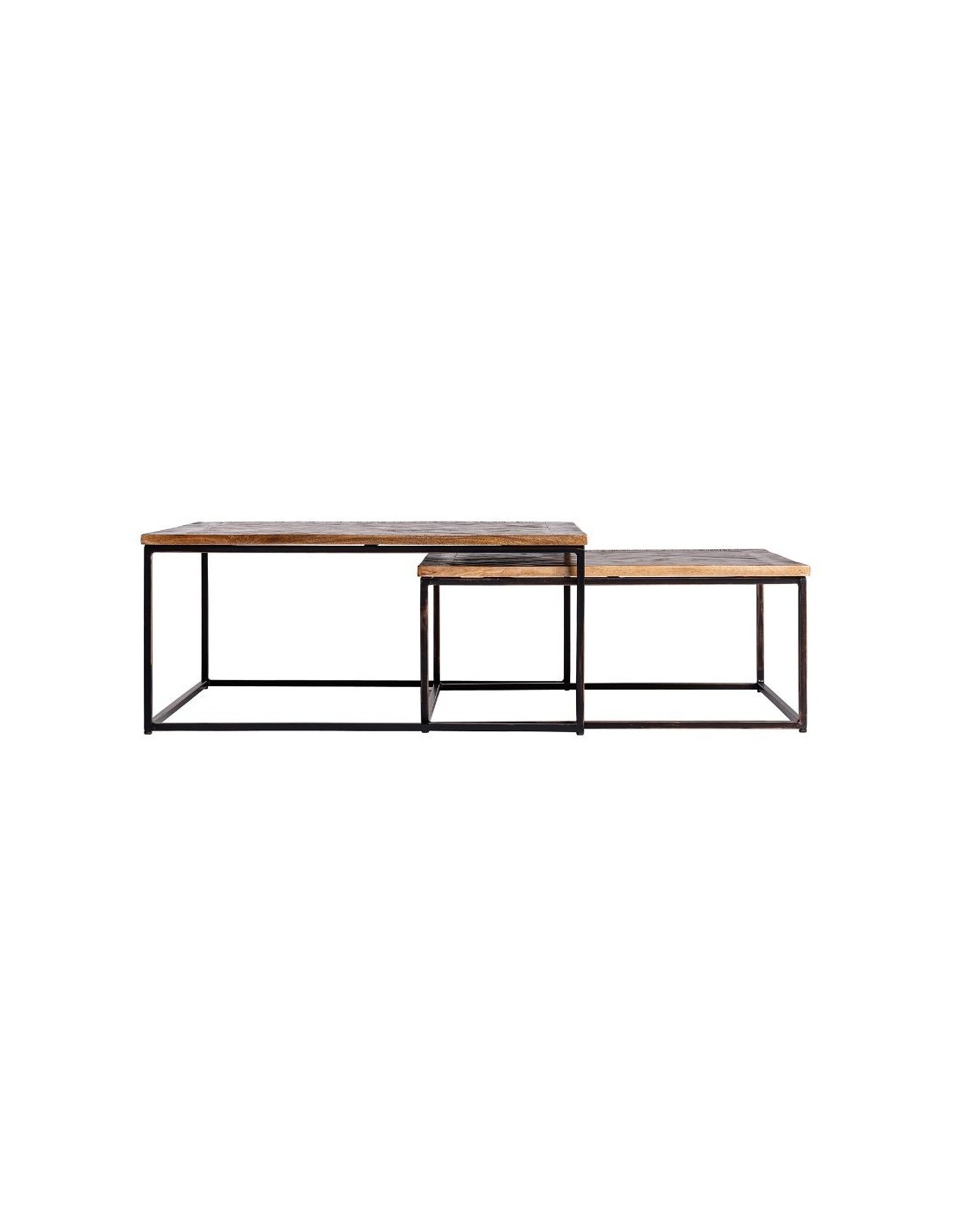 Mesa De Centro J/2 Vichy, En Color Negro/Natural, De Estilo Colonial. Fabricado En Madera De Mango, Combinado Con Acero Y Madera Dm.