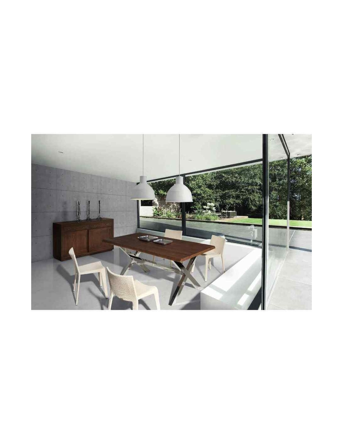 Mesa de comedor con sillas y mesa de centro a juego en madera maciza estilo industrial (22)