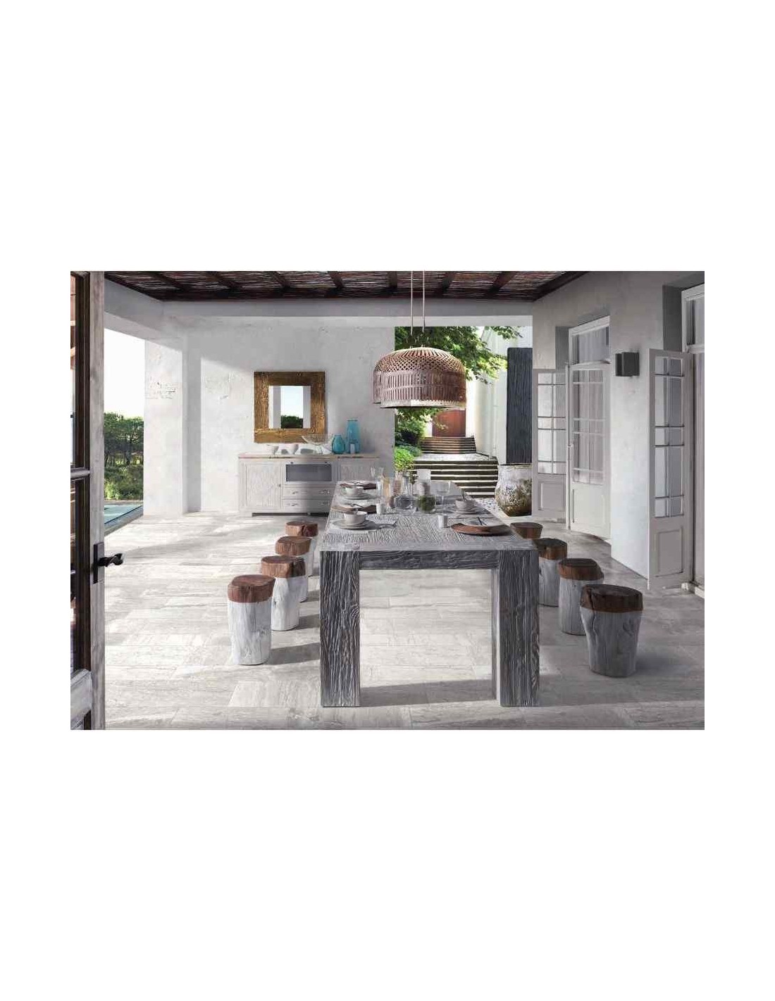 Mesa de comedor con sillas y mesa de centro a juego en madera maciza estilo industrial (29)