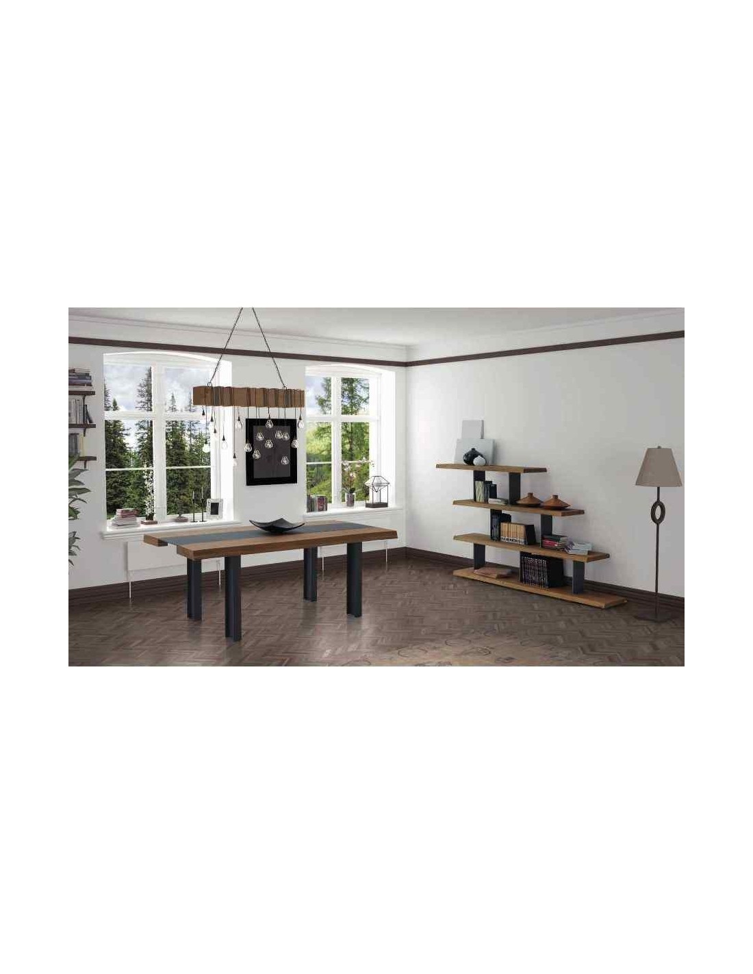 Mesa de comedor con sillas y mesa de centro a juego en madera maciza estilo industrial (3)