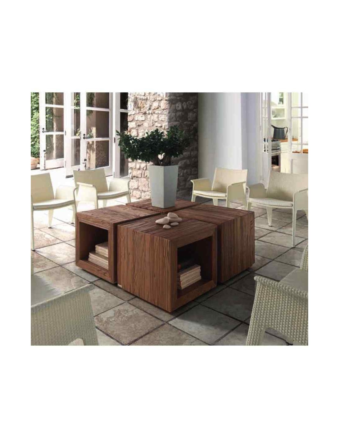 Mesa de comedor con sillas y mesa de centro a juego en madera maciza estilo industrial (7)