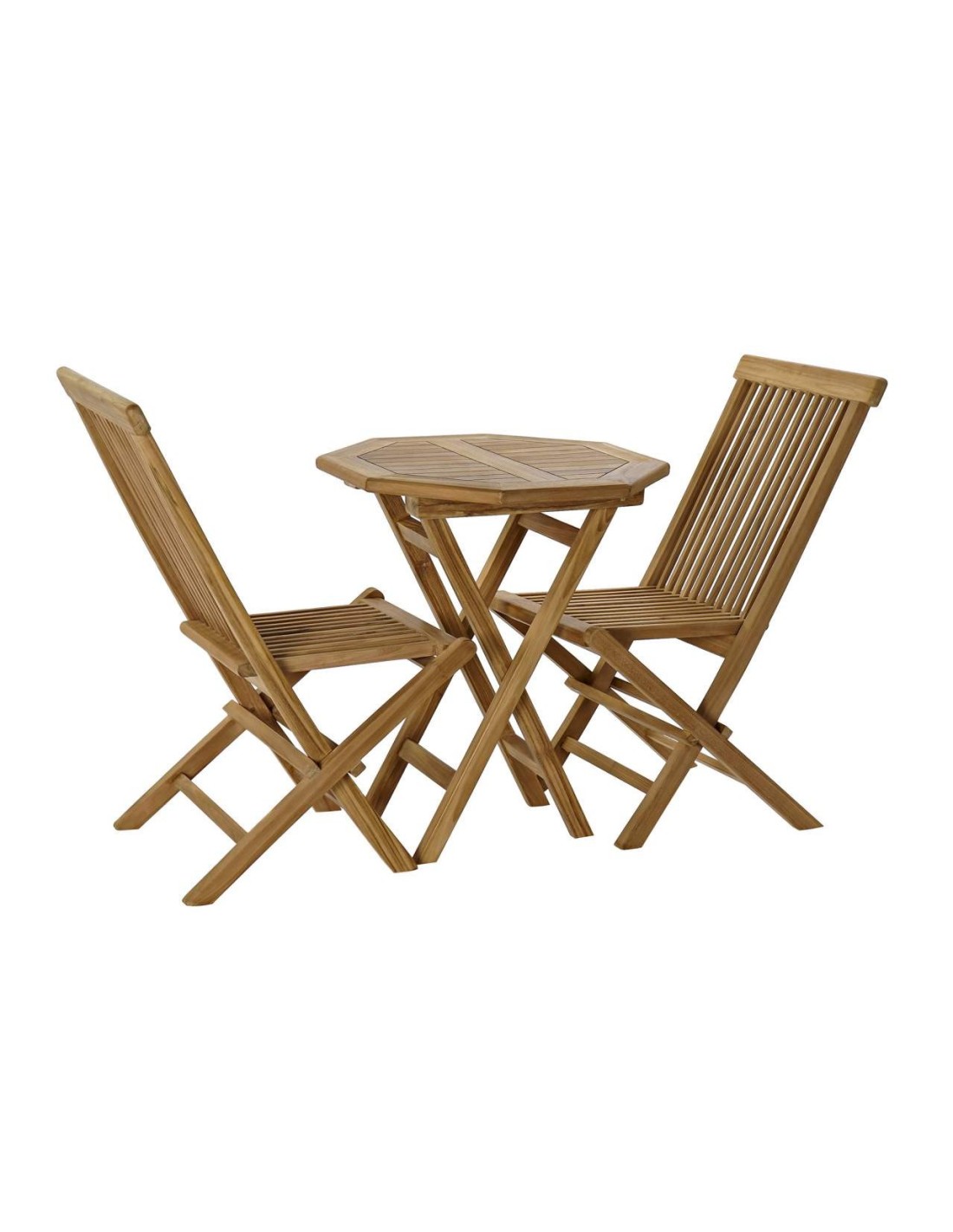 Mesa Set 3 Teca 60x60x75 2 Sillas Natural Marron