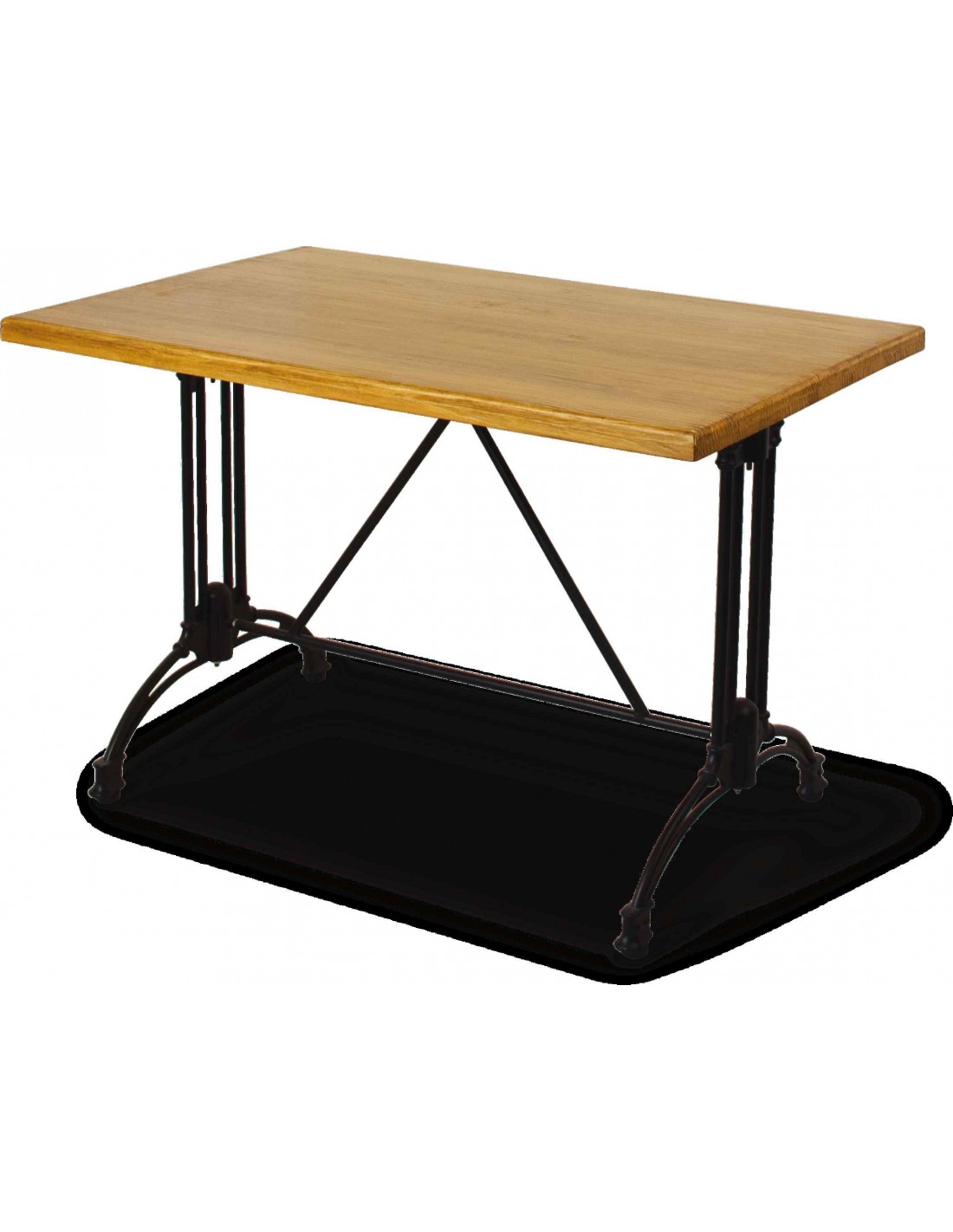 Mesas de salon altas y bajas para taburetes hechas de madera natural barnizada patas metalicas (1)