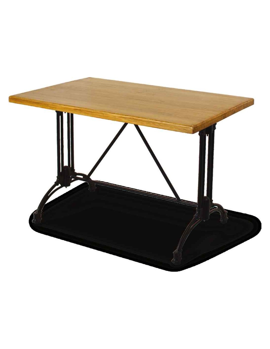 Mesas de salon altas y bajas para taburetes hechas de madera natural barnizada patas metalicas (5)