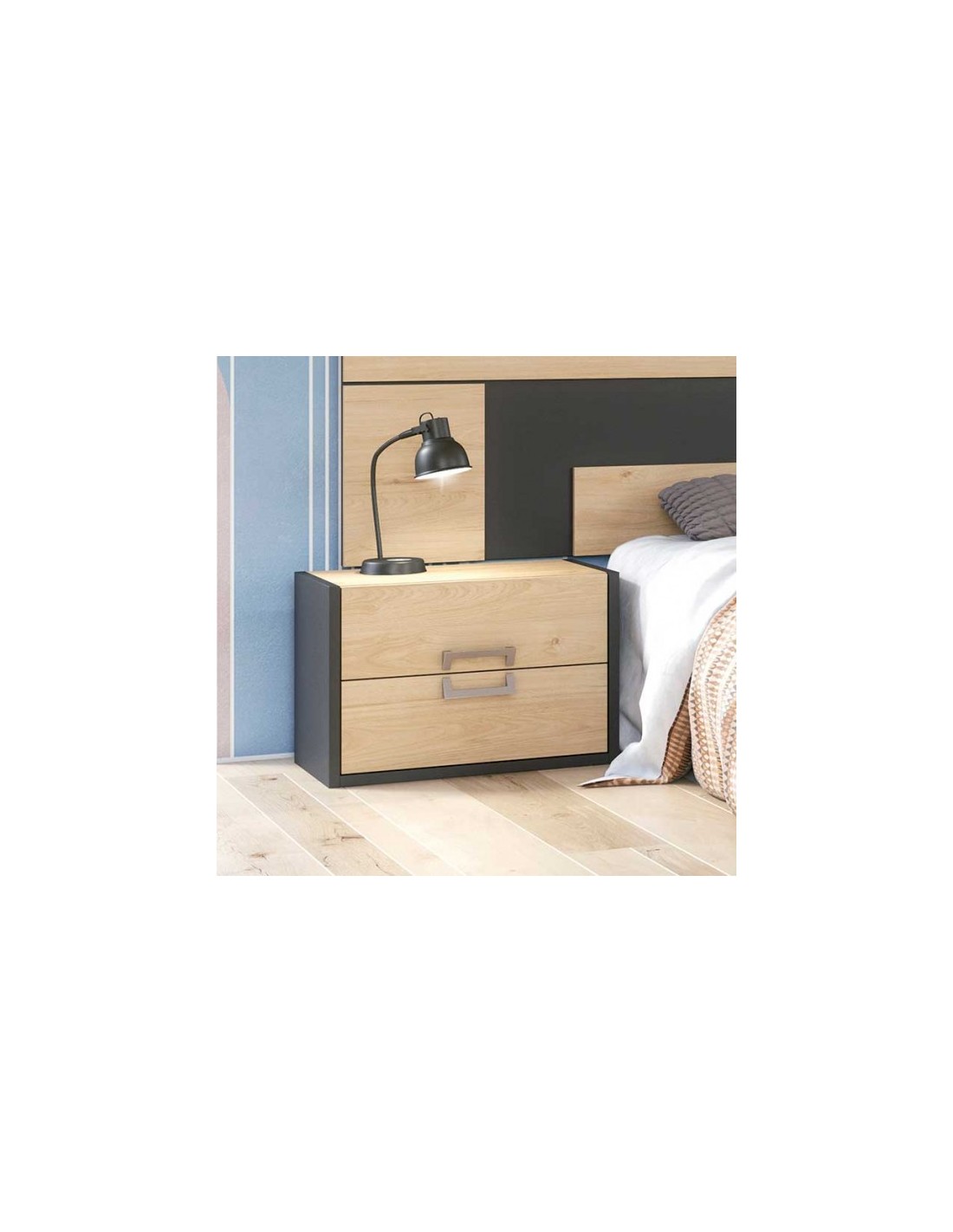 Mesita de noche de diseño moderno en color roble y grafito con tiradores metálicos elegantes. Su diseño moderno de una calidad sin precedentes aportará a tu dormitorio ese estilo que buscas.