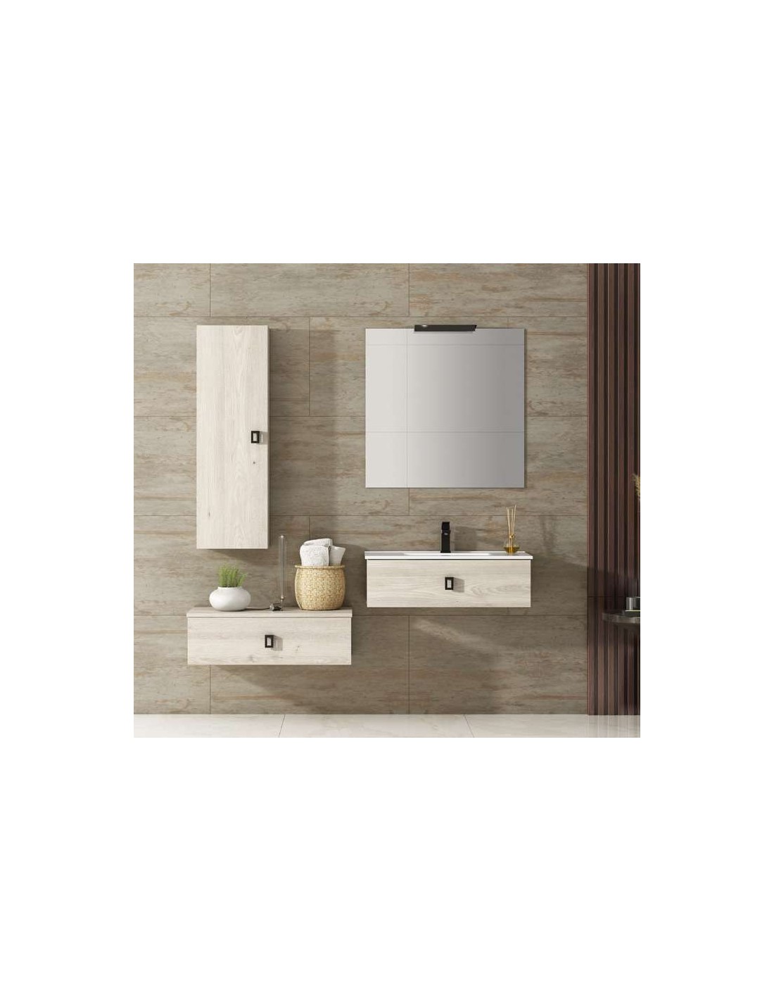 Mueble de Baño modelo Gonzalez de 80cm en split suspendido. Opción Espejo, foco y columna auxiliar