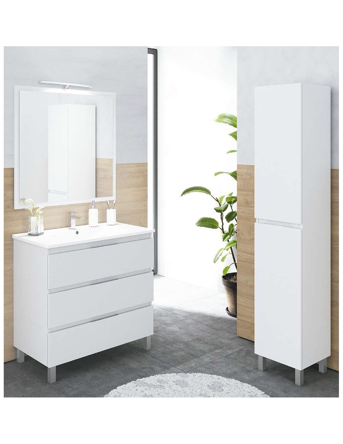 Mueble de Baño 3 Cajones Suspendido Modelo Pittman, de 100cm con lavabo porcelánico