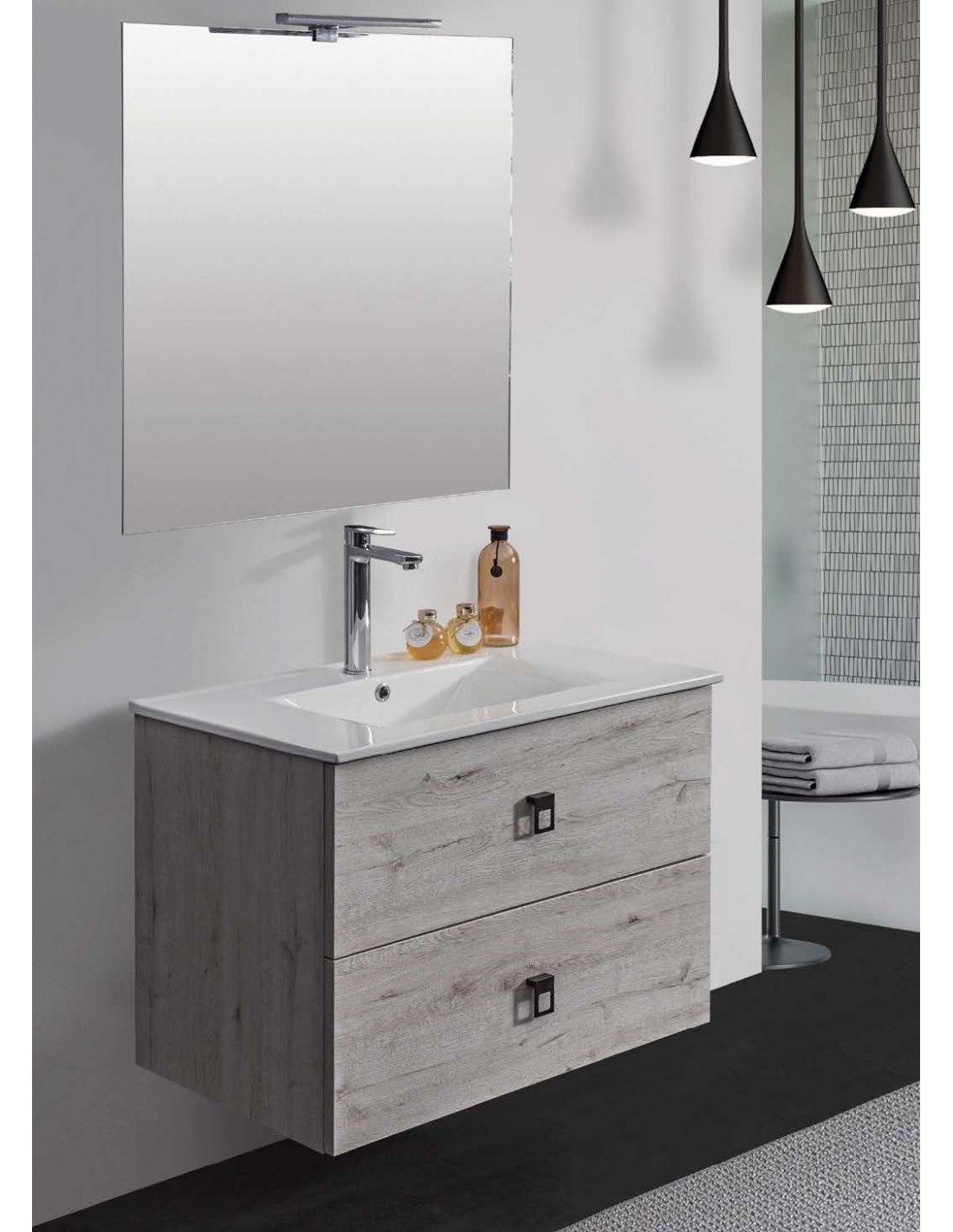 Mueble de Baño modelo Ramirez de 80cm suspendido. Opción Espejo y foco