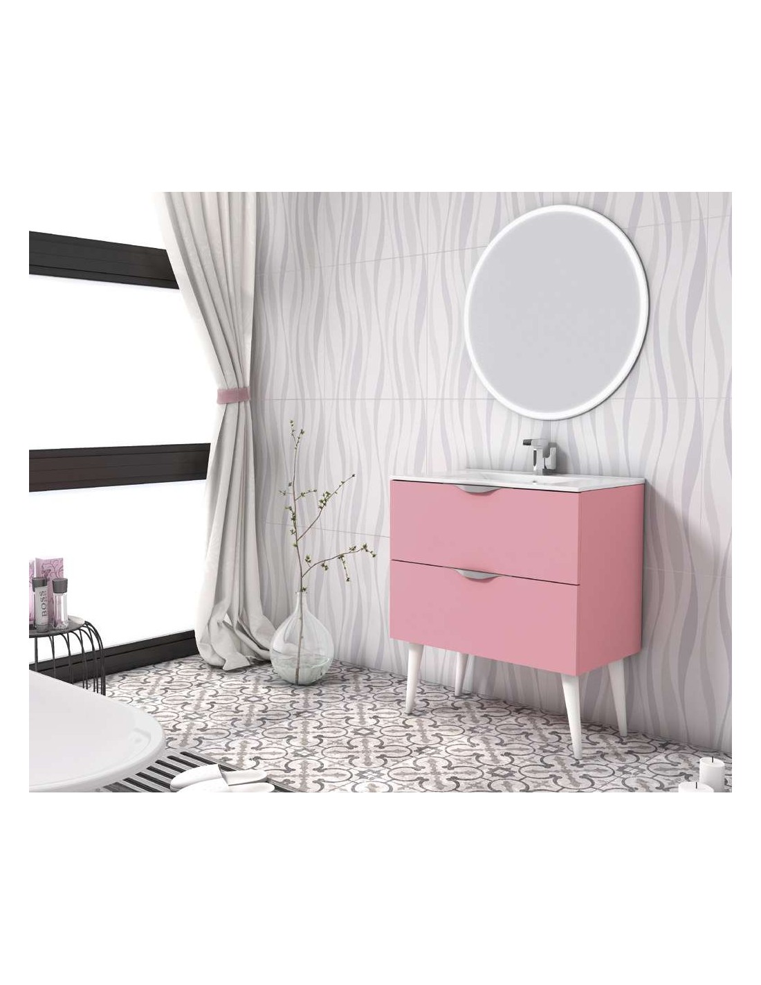Mueble de Baño 2 cajones modelo Richmond Sexton suspendido con patas de 80cm con lavabo porcelana