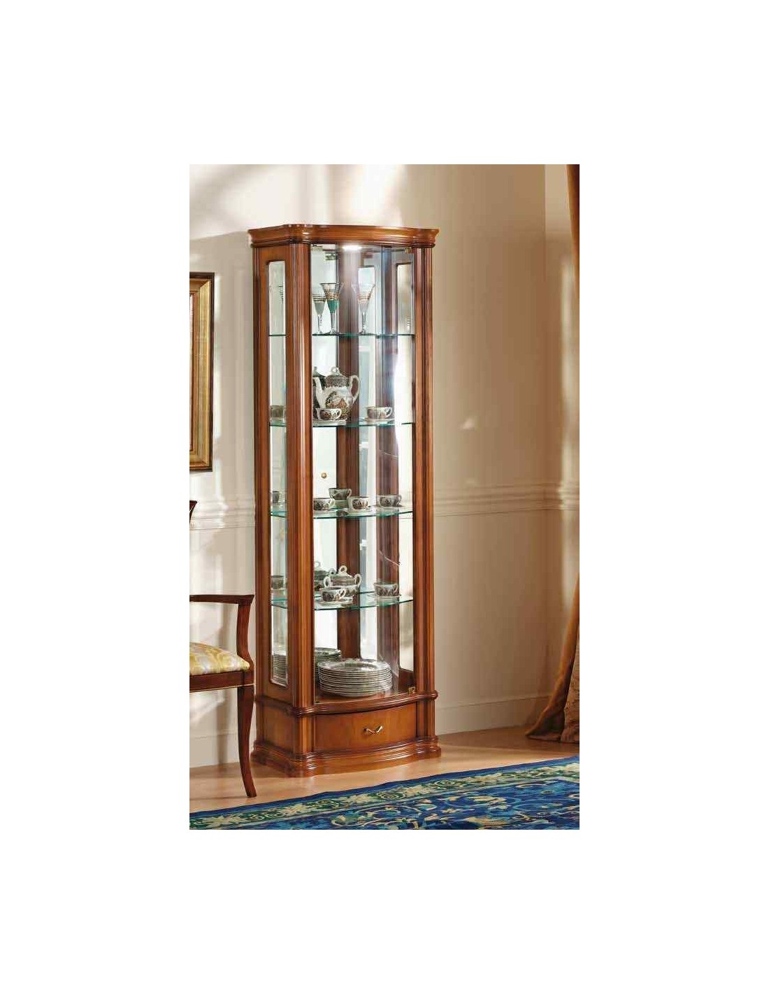 Mueble de salon con vitrinas diseño clasico cerezo patas torneadas con molduras y cristales (14)