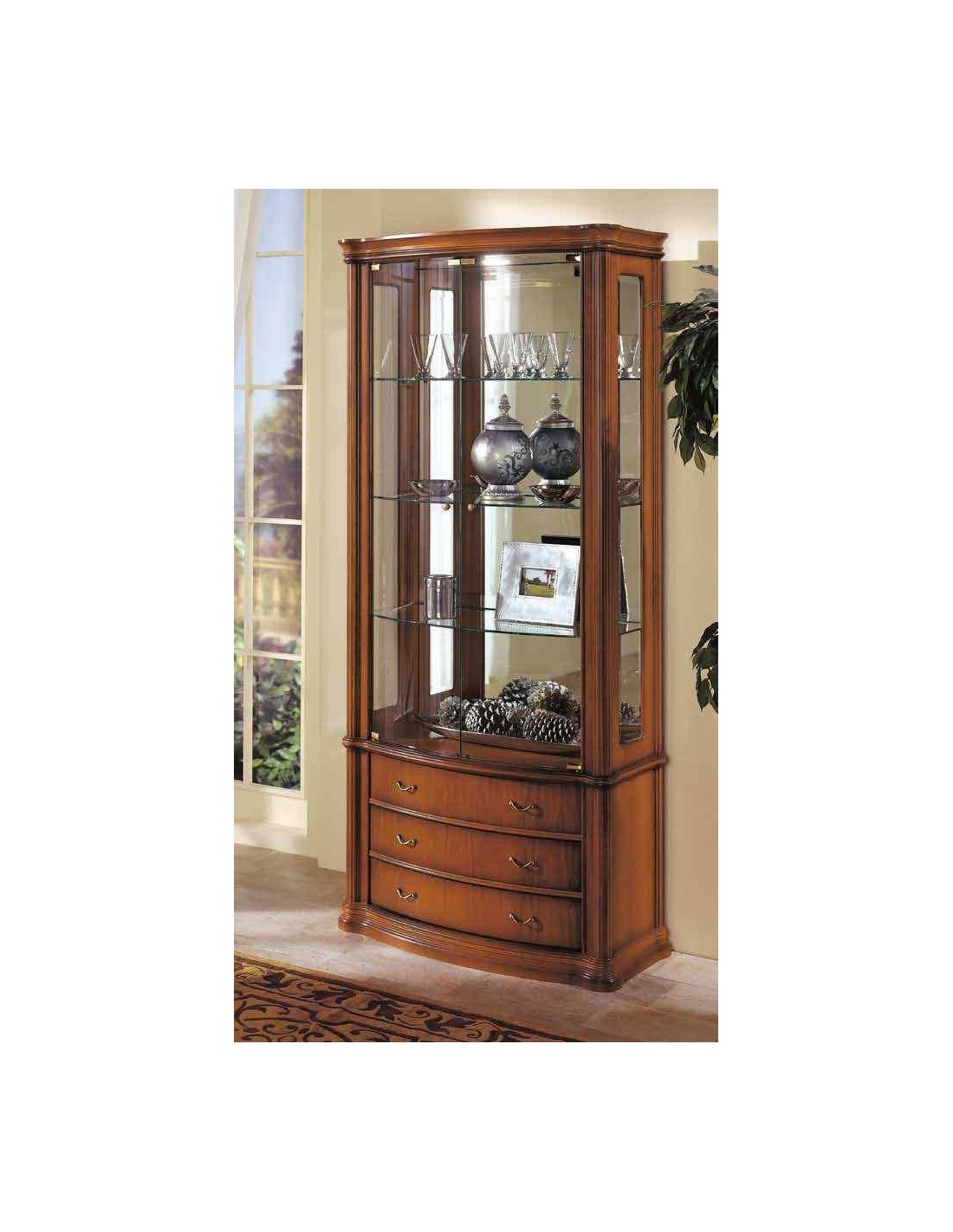 Mueble de salon con vitrinas diseño clasico cerezo patas torneadas con molduras y cristales (16)