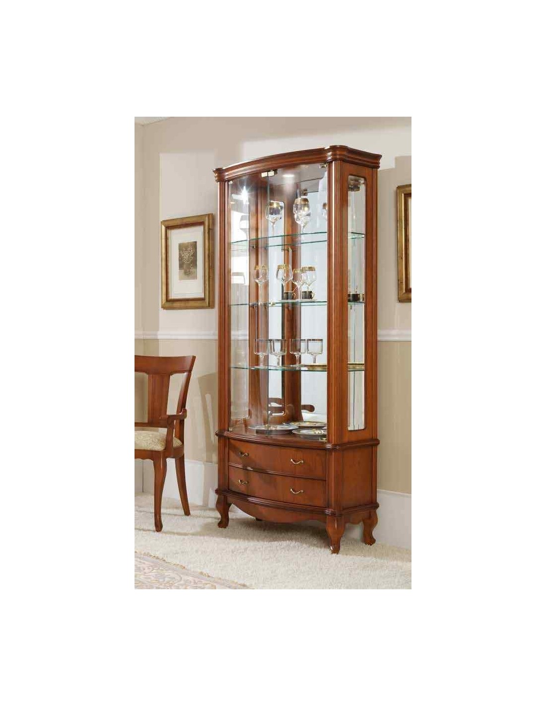 Mueble de salon con vitrinas diseño clasico cerezo patas torneadas con molduras y cristales (21)