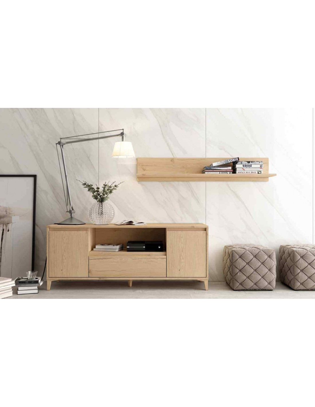 Mueble de salon diseño nordico colores madera modular con vitrinas muebles altos estantes (4)