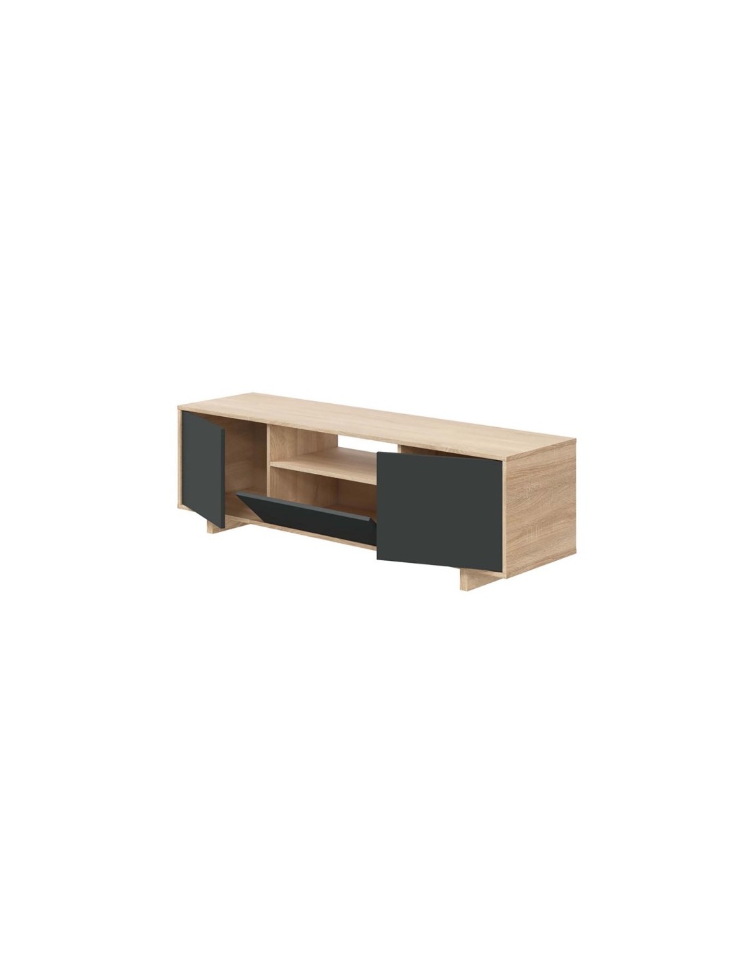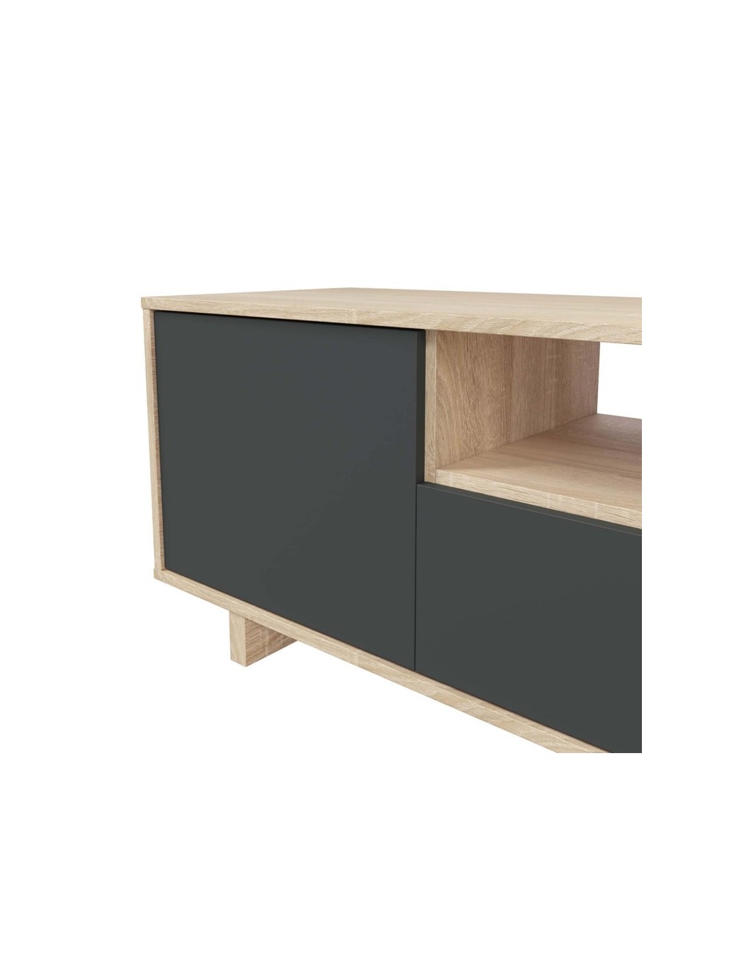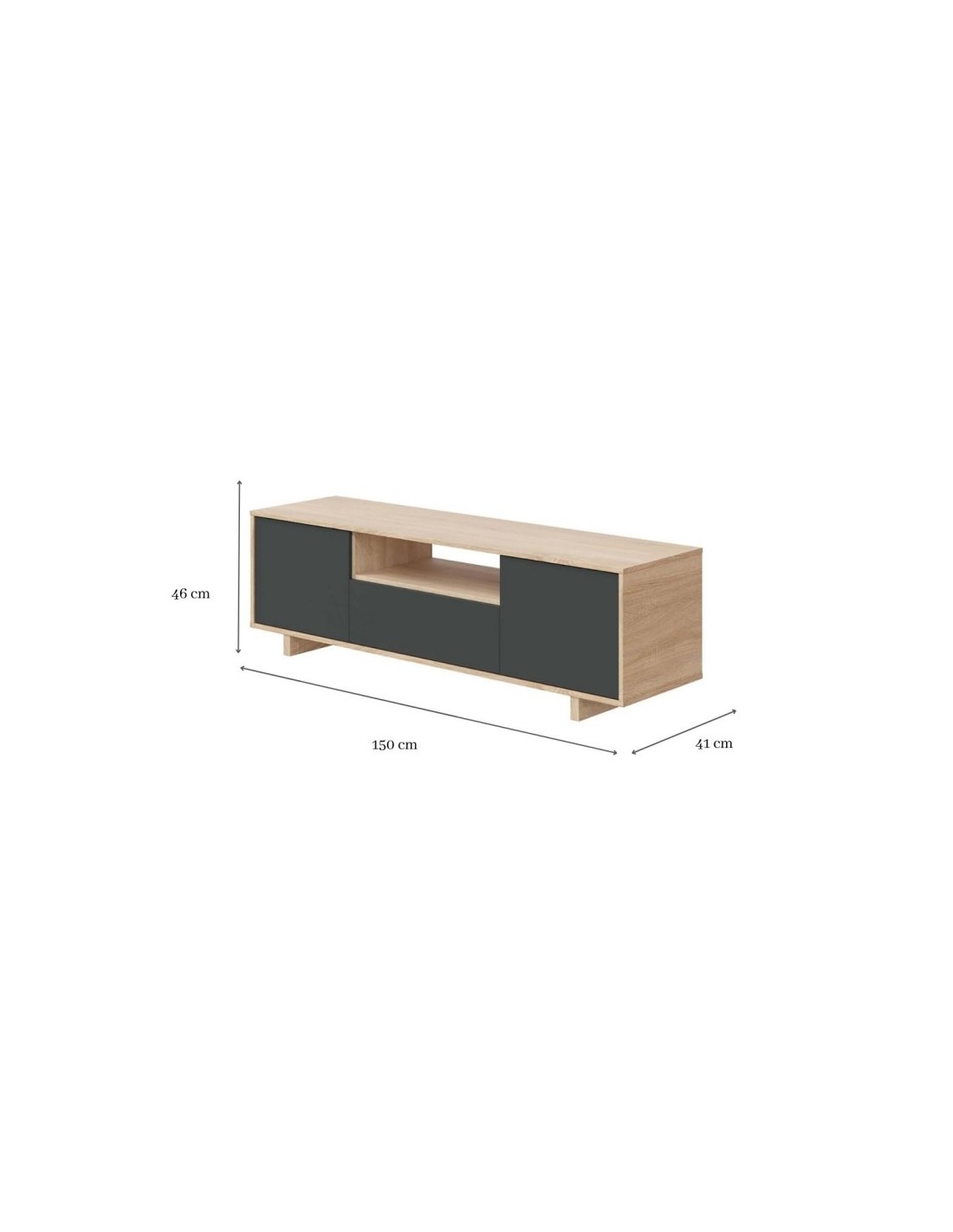 Bajo de televisión modelo Zaida de 150cm con un hueco en el centro. Combínalo con otra serie del mismo color y consigue un salón del que podrás presumir. De color cambria-grafito.