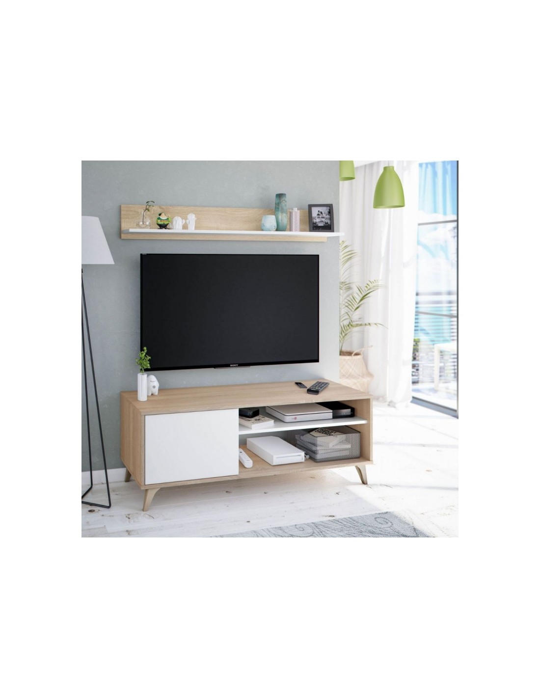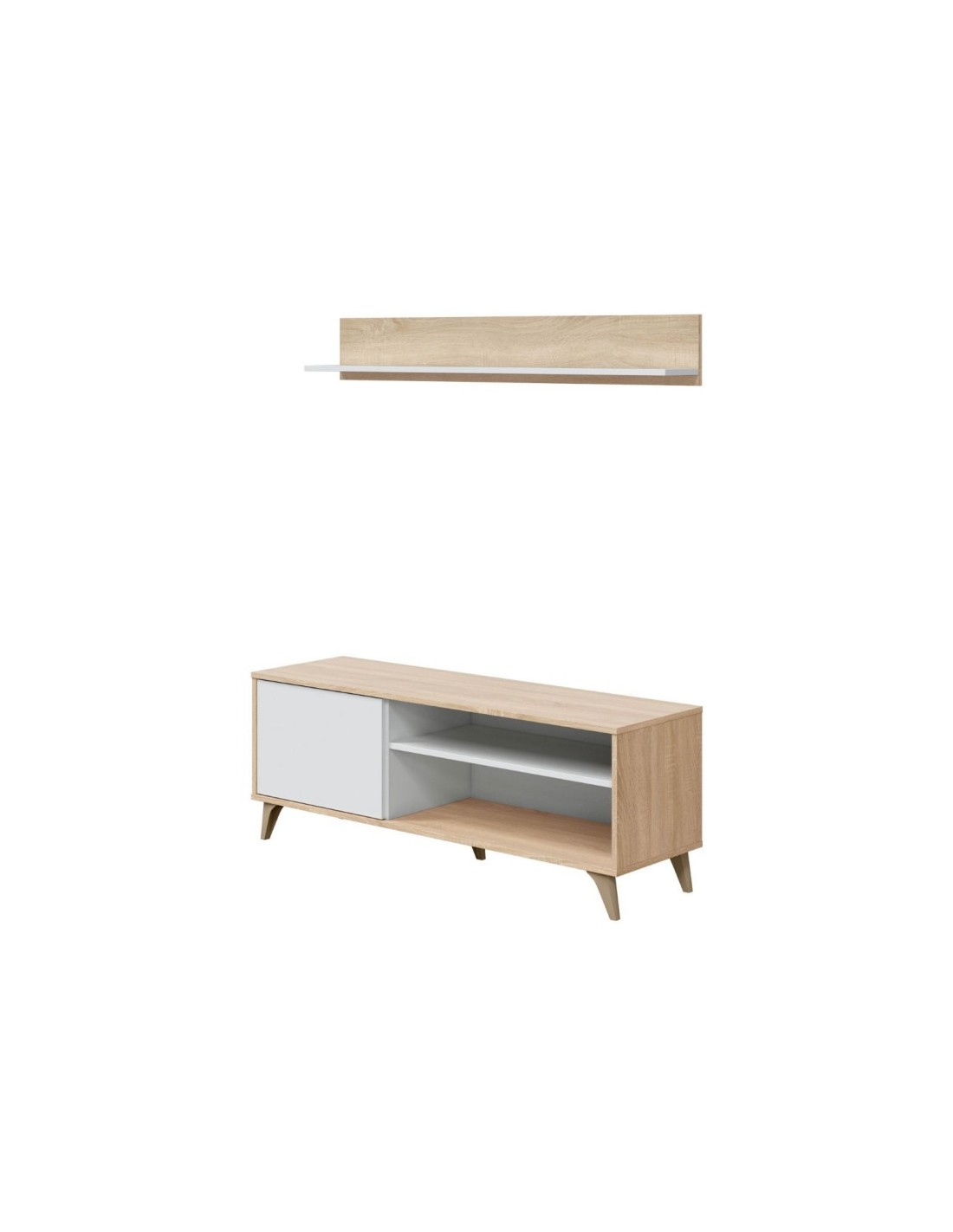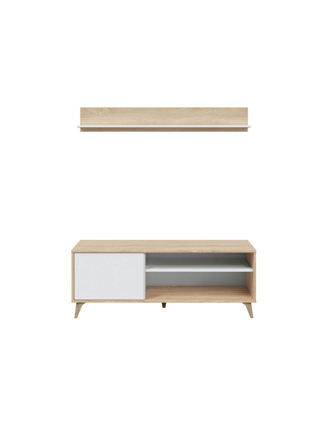 Aporta a tu hogar un diseño funcional gracias al Mueble TV con Estante Roble Canadian. Sus materiales de primera calidad te aseguran un mueble resistente y duradero para tu hogar. Disfruta de sus 2 estantes para tener un mayor orden y organización en tu salón. Gana en espacio con su armario con sistema push.