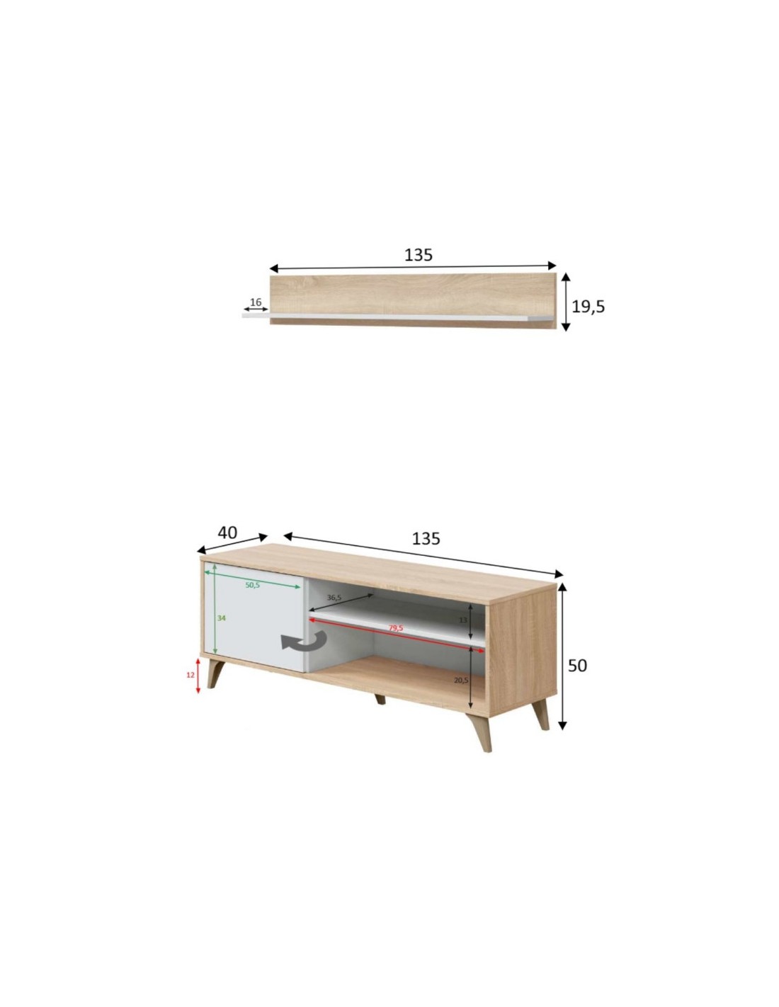 - Mueble TV: 50 cm (alto) x 135 cm (ancho) x 40 cm (prof.)