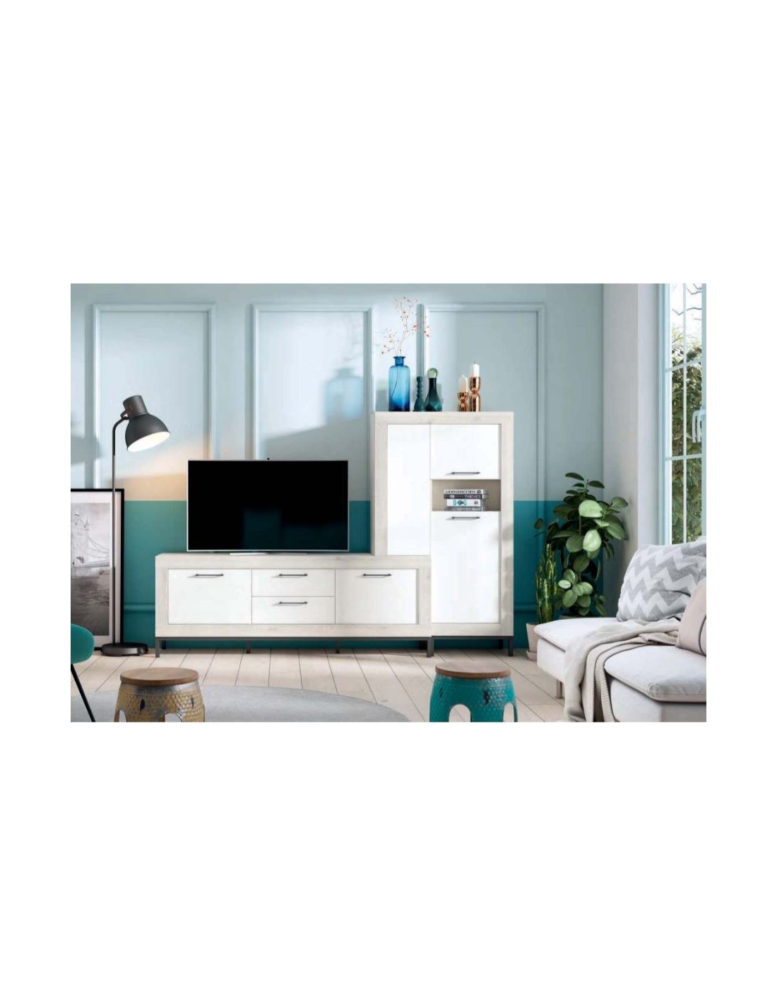 Muebles conjunto de salon composiciones completas diseño moderno con muebles modulares y colgados (52)