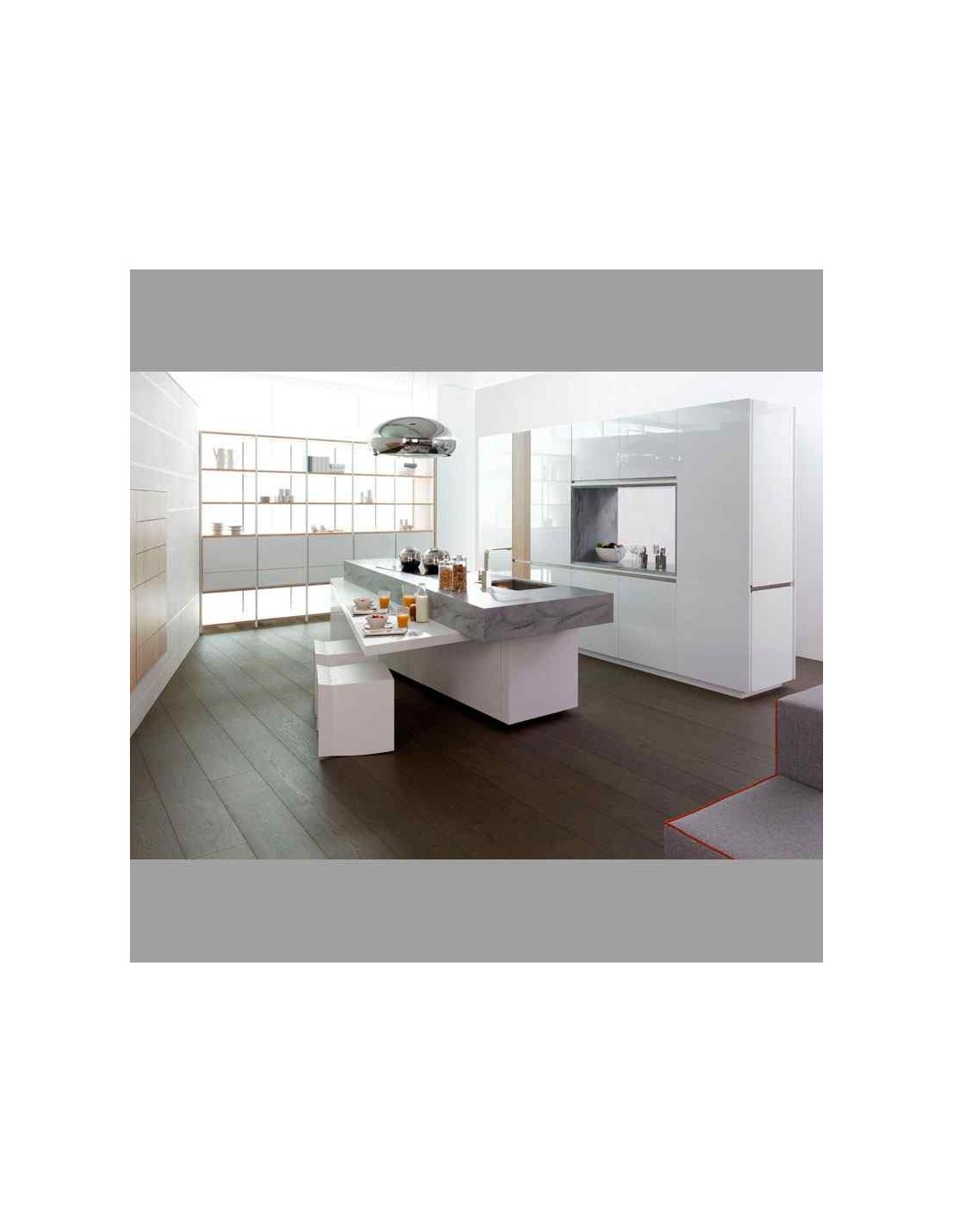 muebles de cocina blanca isla moderna encimera granito deckton futurista