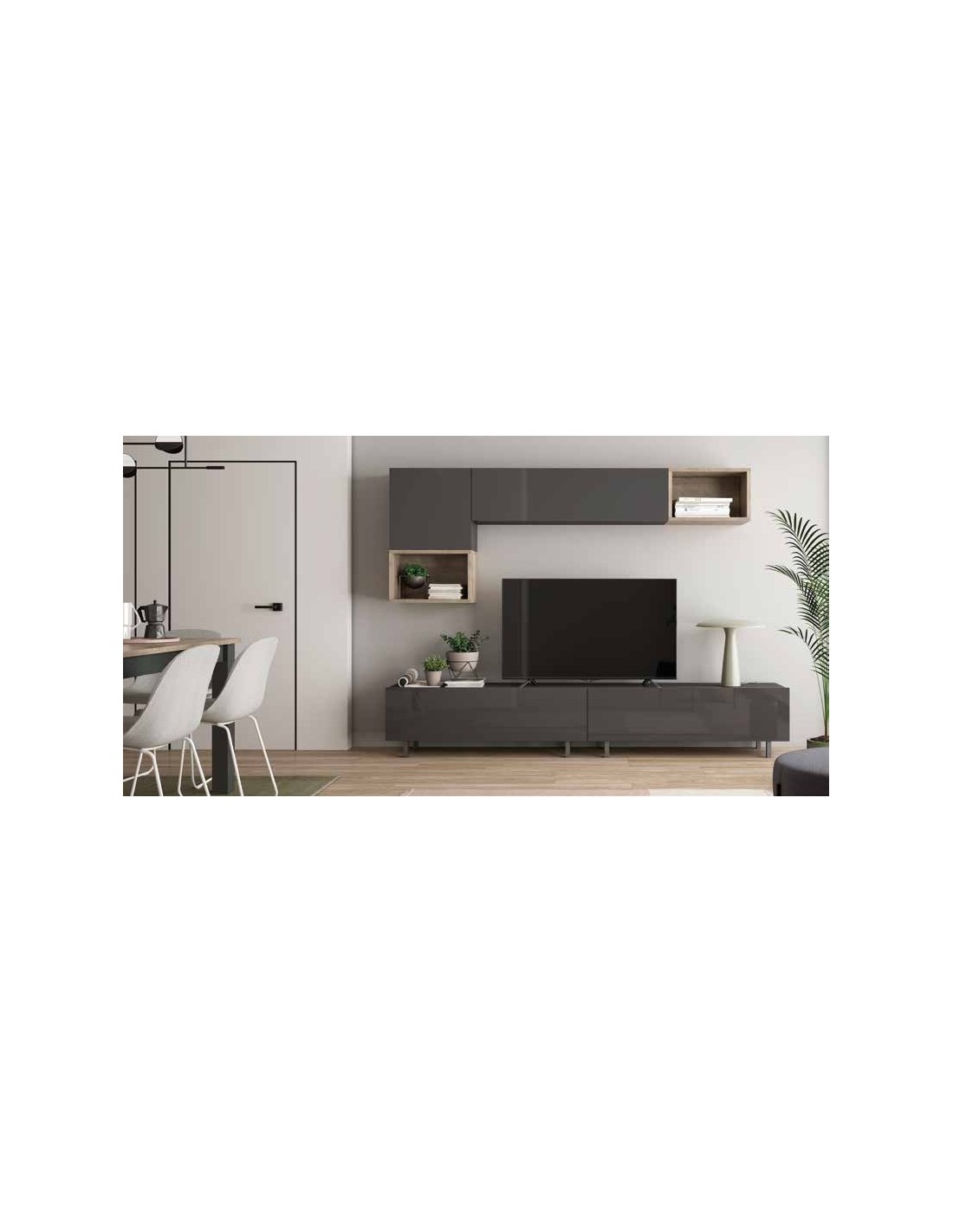 Muebles de salon comedor diseño moderno mezcla con madera muebles colgados con detalles modernos (10)