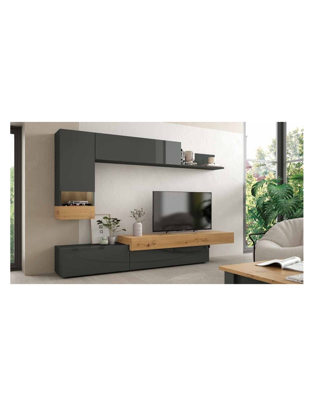 Muebles de salon comedor diseño moderno mezcla con madera muebles colgados con detalles modernos (4)