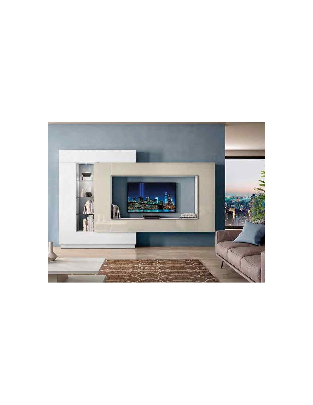 Muebles de salon diseño moderno colgados en la pared formas rectas con cirstales luces led con mesas y aparador (125)