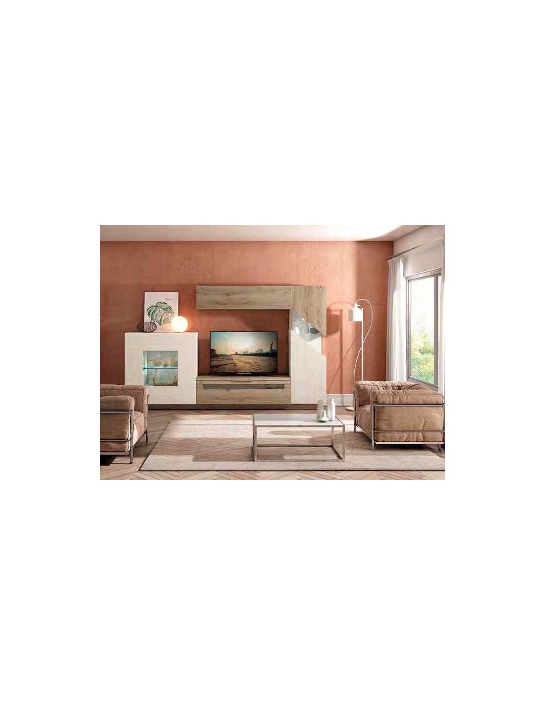 Muebles de salon diseño moderno colgados en la pared formas rectas con cirstales luces led con mesas y aparador (140)