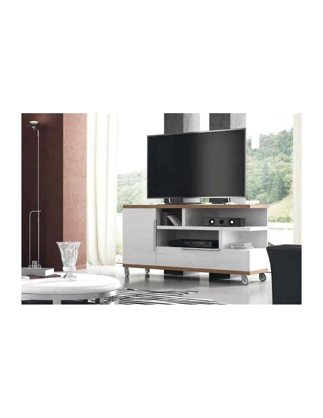 Muebles de salon diseño moderno colgados en la pared formas rectas con cirstales luces led con mesas y aparador (165)