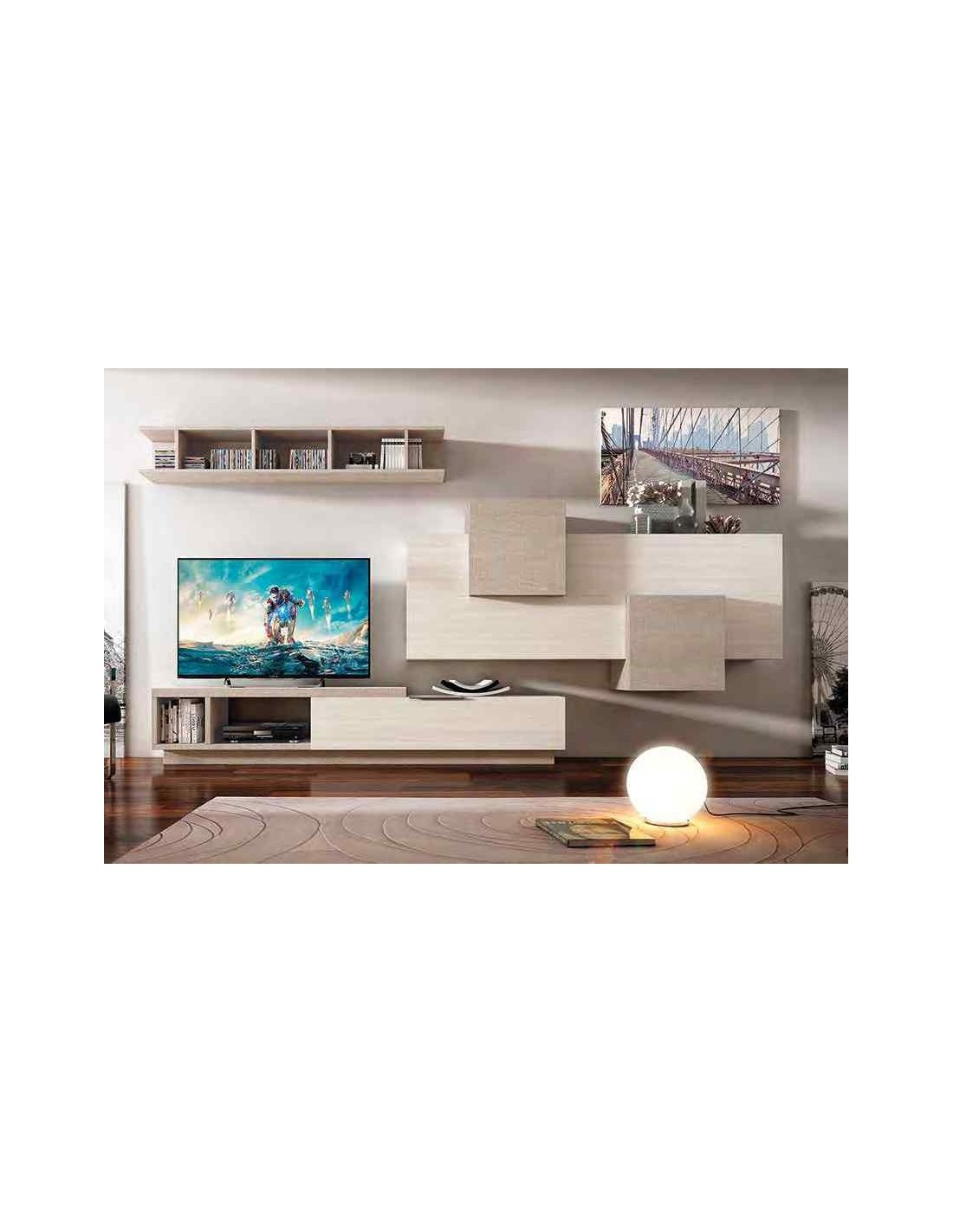 Muebles de salon diseño moderno colgados en la pared formas rectas con cirstales luces led con mesas y aparador (87)