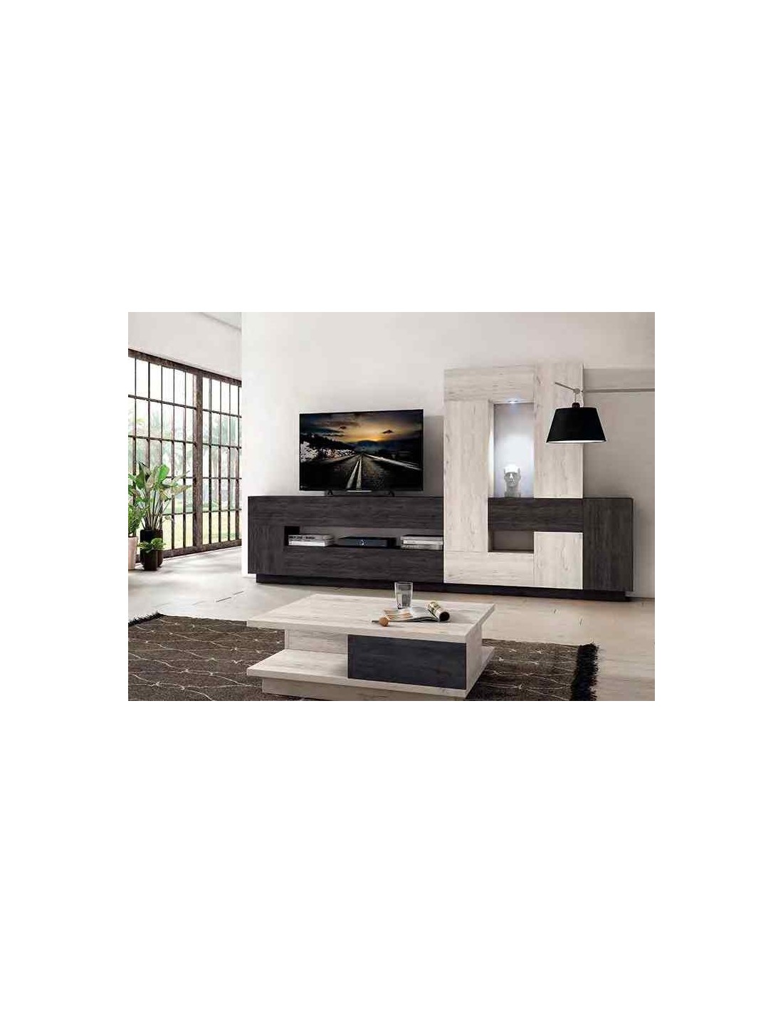 Muebles de salon diseño moderno colgados en la pared formas rectas con cirstales luces led con mesas y aparador (91)