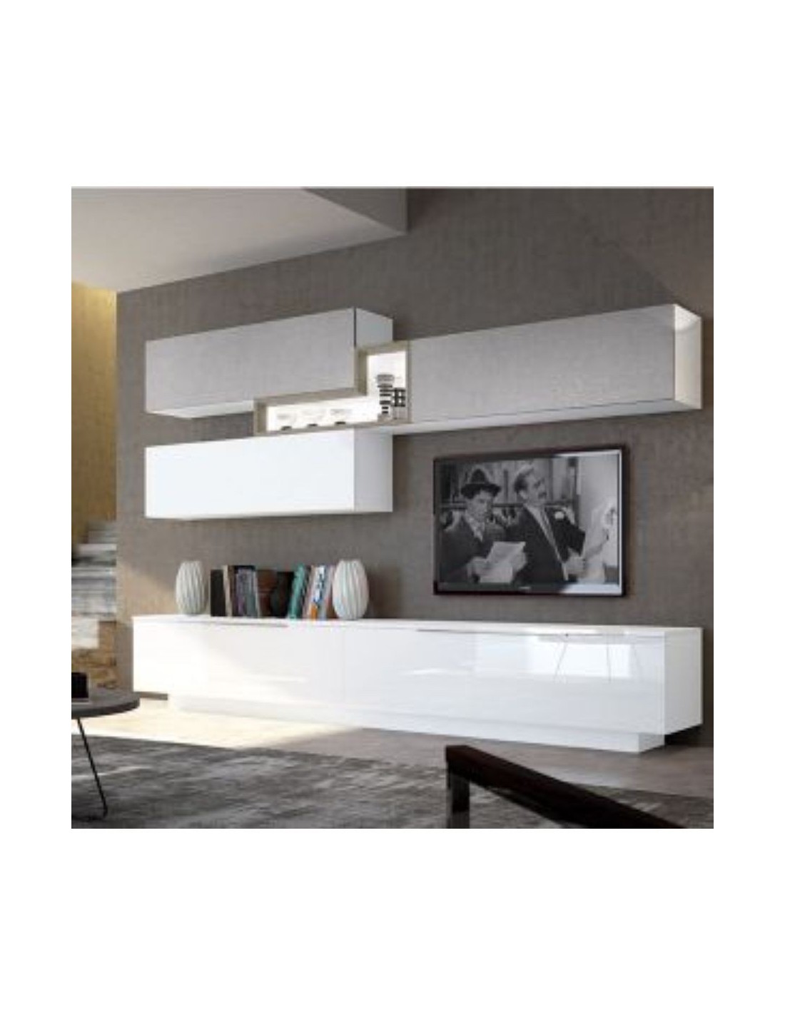 Muebles de salon diseño moderno lineal a medida muebles colgados a suelo aparadores diferentes colores (50)