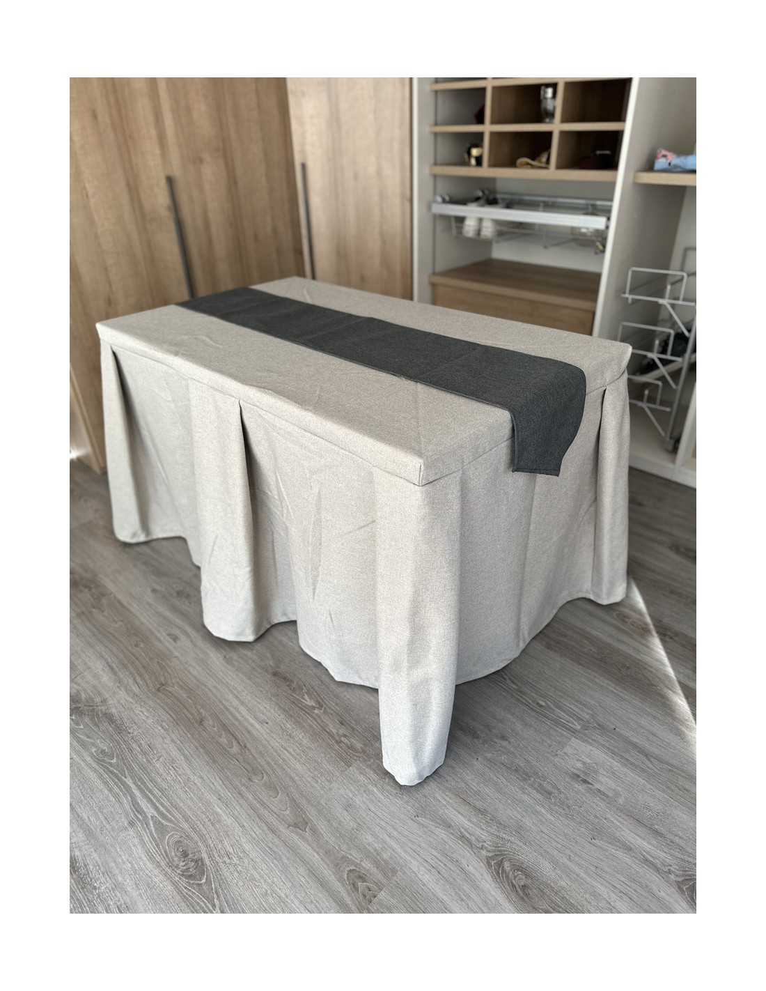 Pack Mesa + Ropa de Mesa Camilla Moderna Antimanchas color Beige con Camino Marengo