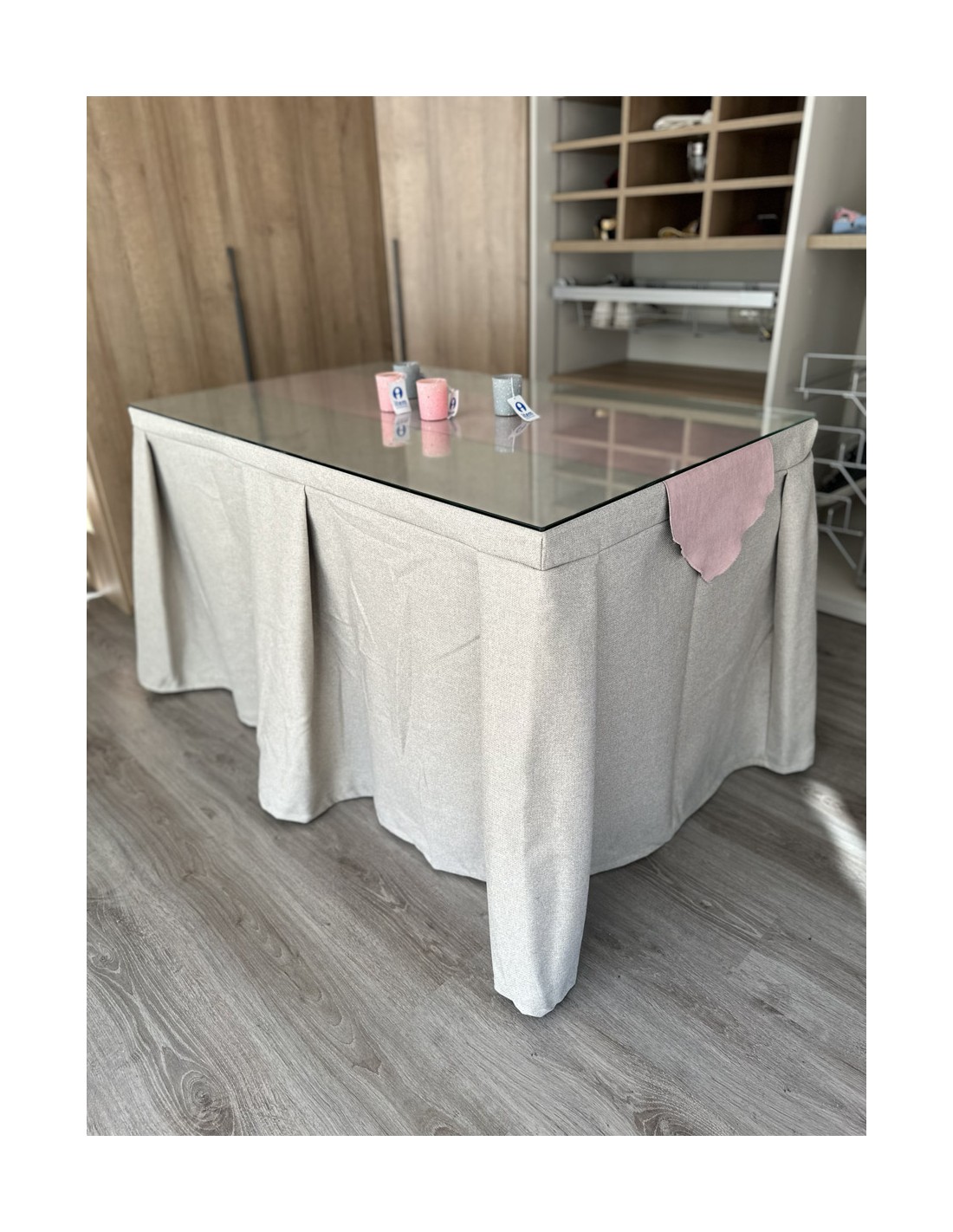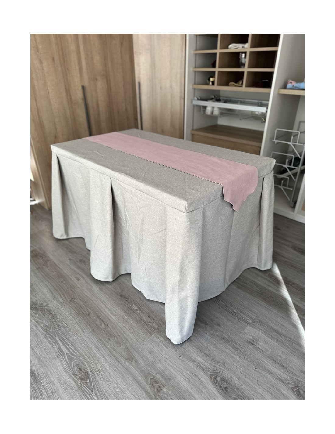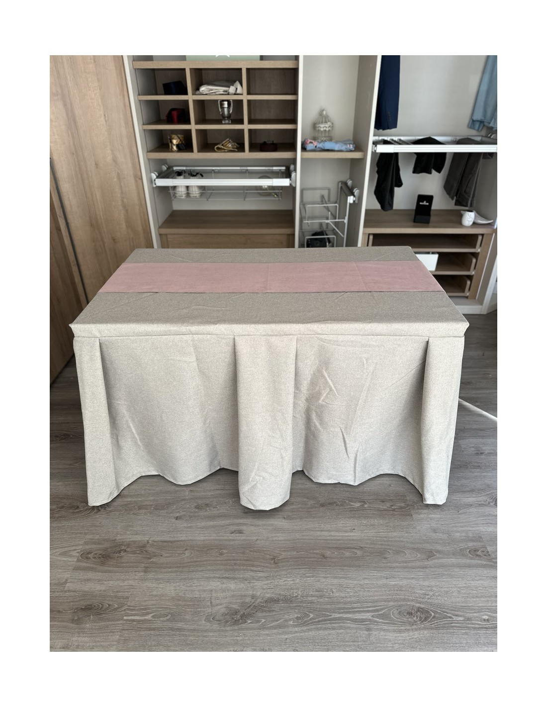 Pack Mesa + Ropa de Mesa Camilla Moderna Antimanchas color Beige con Camino Rosa
